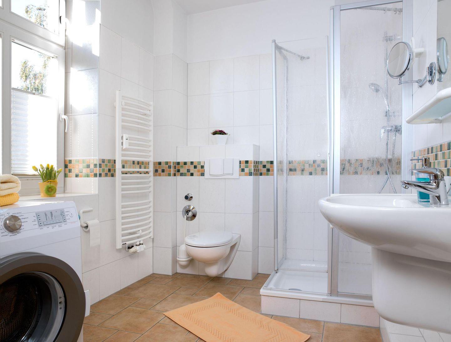 Die Bettdecken haben eine angenehme Kuschelgröße von 155 x 220 cm, so dass das Ausschlafen zu Freude wird. Im Bad steht auch die Waschmaschine.