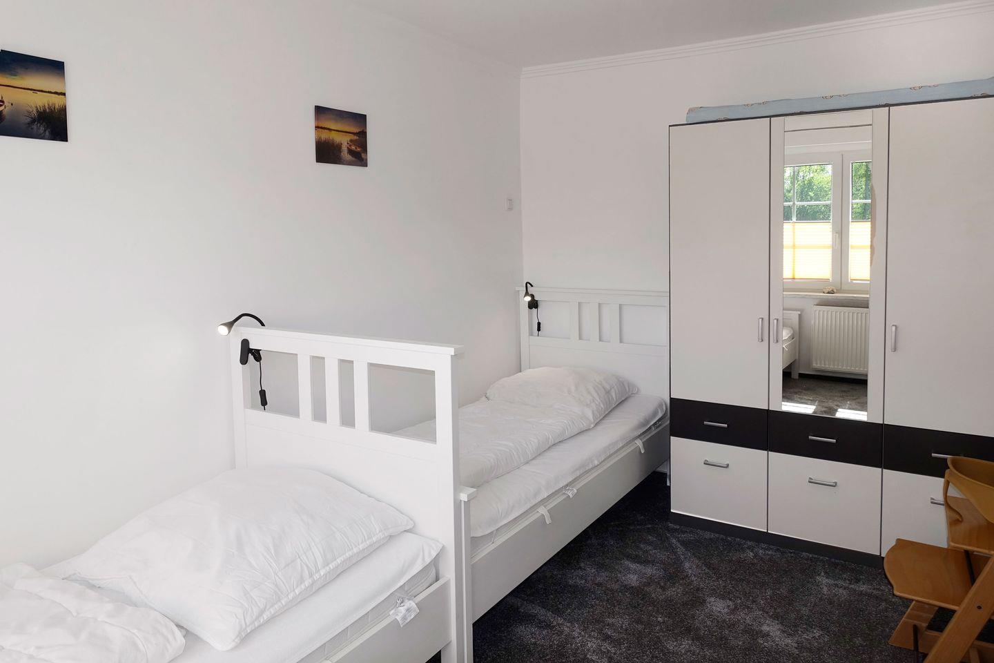 In dieser Ferienwohnung im Erdgeschoss erwartet Sie ein helles Wohnzimmer mit Küchenzeile und Essbereich. Ein Flach-TV sowie eine Anlage mit Radio-/CD-/DVD Player stehen für Ihre Unterhaltung bereit. Außerdem befindet sich hier ein Schlafzimmer mit Doppelbett sowie ein Schlafzimmer mit einem zwei Einzelbetten für insgesamt 4 Personen. Das Bad ist mit WC und Dusche ausgestattet.