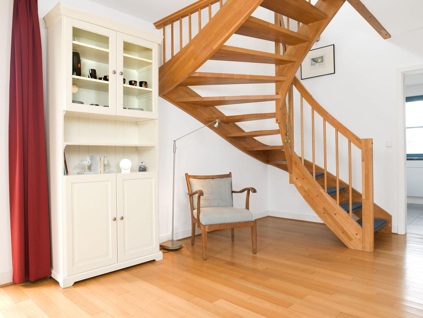Ein Dusch-Bad mit Sauna, sowie eine breite umlaufende Terrasse runden das Erdgeschoss ab.