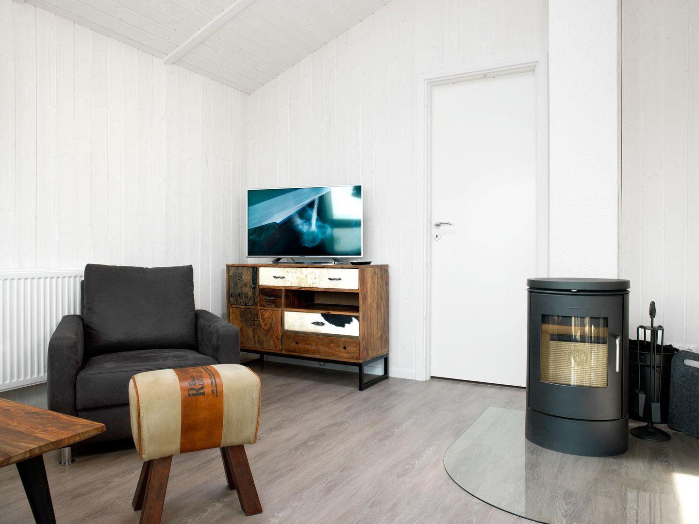 Das Wohnzimmer verfügt über große Fenster und ist modern und hell ausgestattet. Genießen Sie kuschelige Stunden vor dem Kaminofen mit Blick in die Natur. Die offene Küche ist komplett und perfekt ausgestattet. Vom Wohnzimmer gelangt man auf die Terrasse und von dort auf die sich anschließende große Wiese.