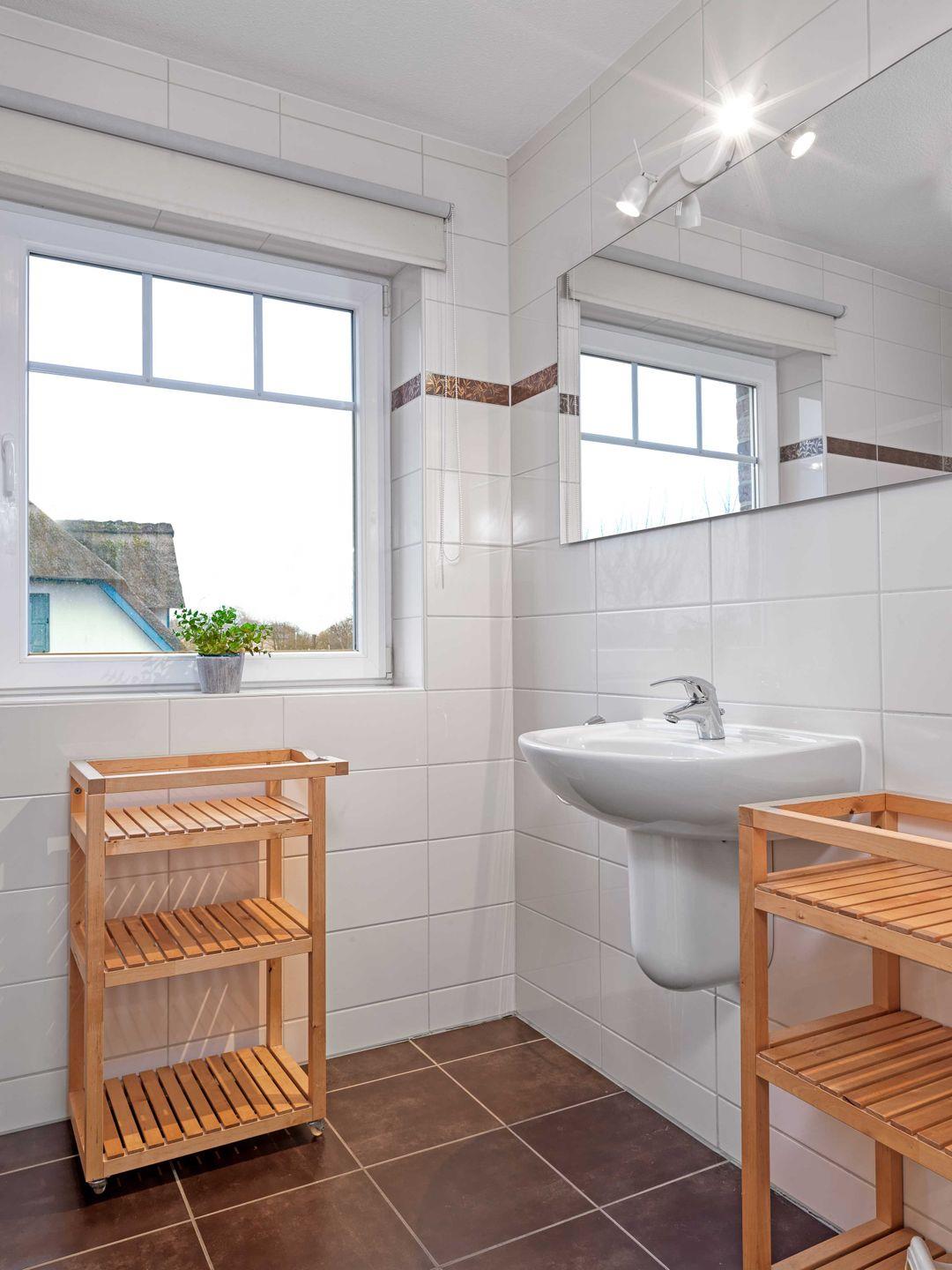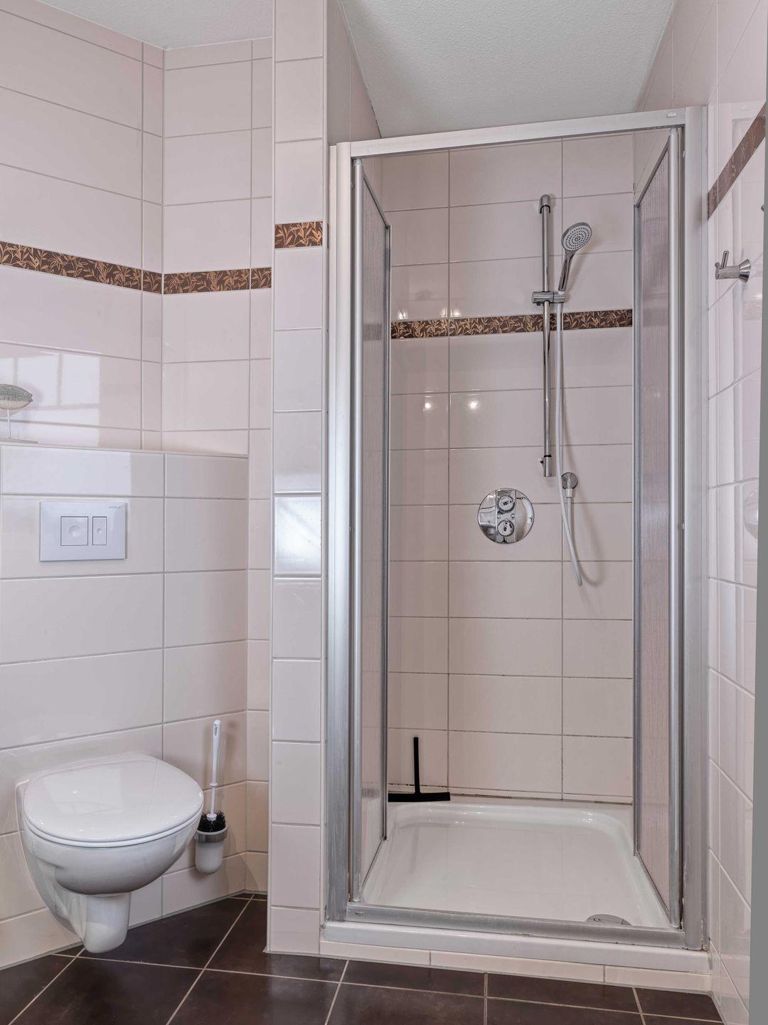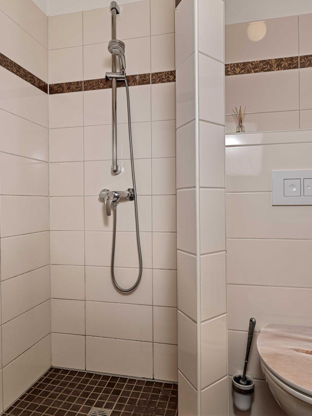 Das Haus verfügt über ein großzügiges Badezimmer mit Dusche im Obergeschoss, sowie über ein zusätzliches Gäste-WC mit Dusche im Erdgschoss.