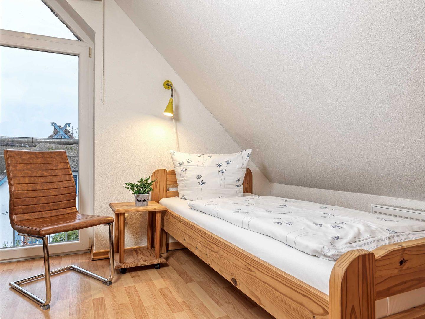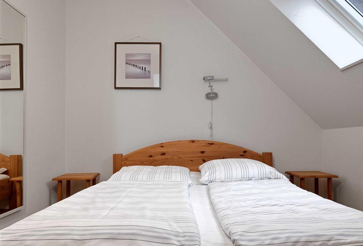Insgesamt stehen Ihnen drei separate Schlafzimmer mit insgesamt sechs Schlafmöglichkeiten zur Verfügung. Im Obergschoss finden Sie zwei Schlafzimmer mit einem Doppelbett und im Dachgeschoss ein Schlafzimmer mit zwei Einzelbetten.