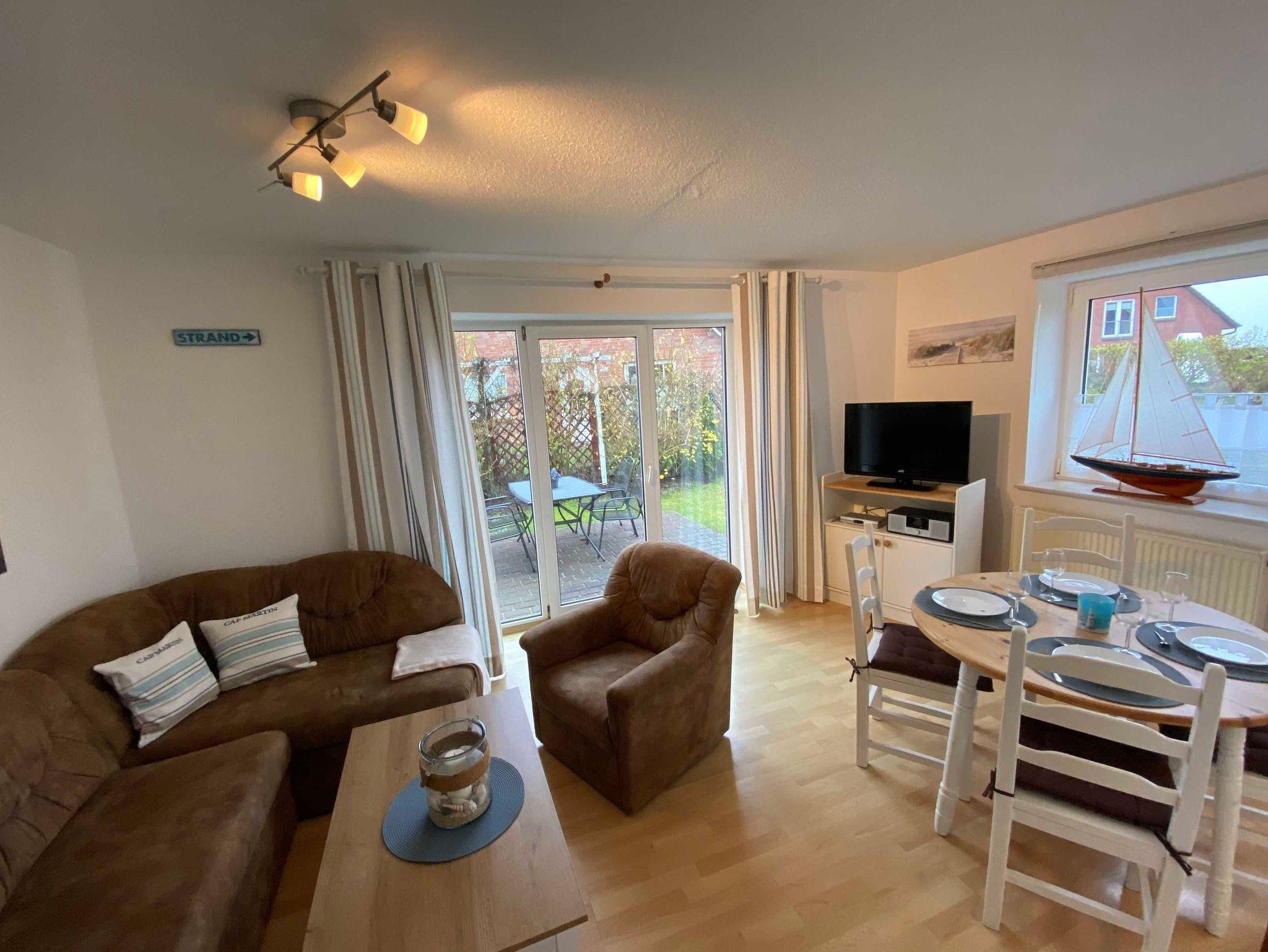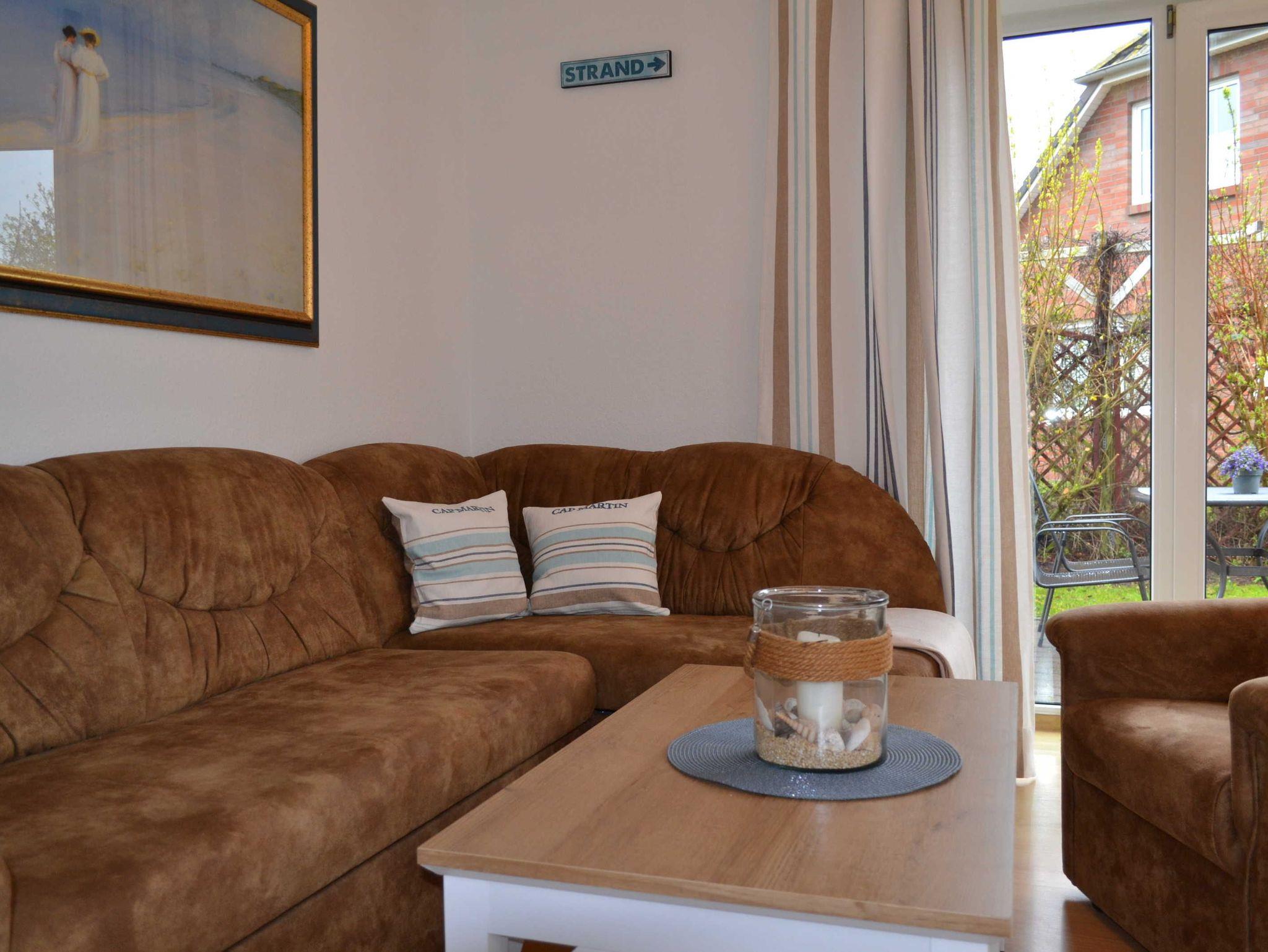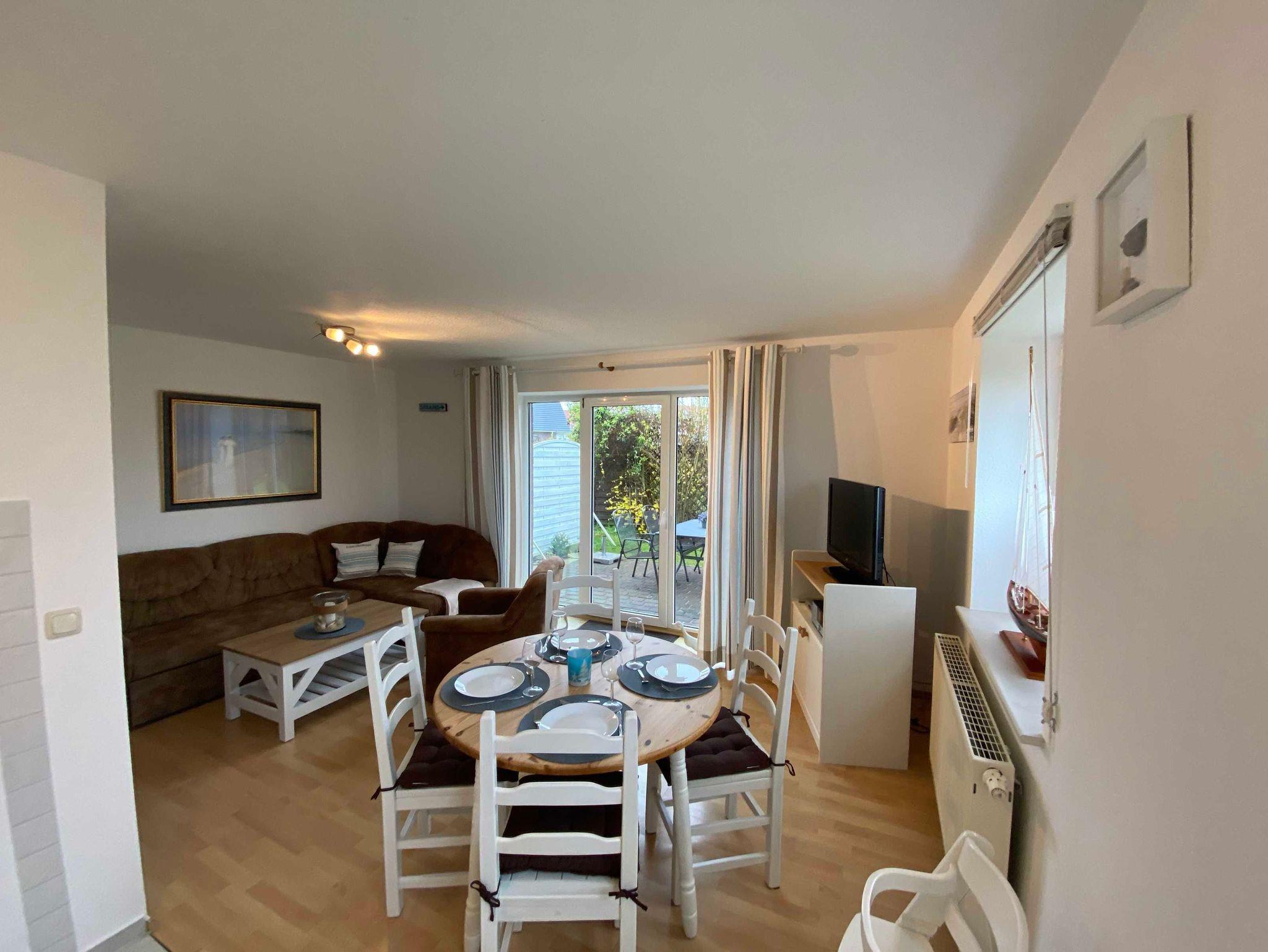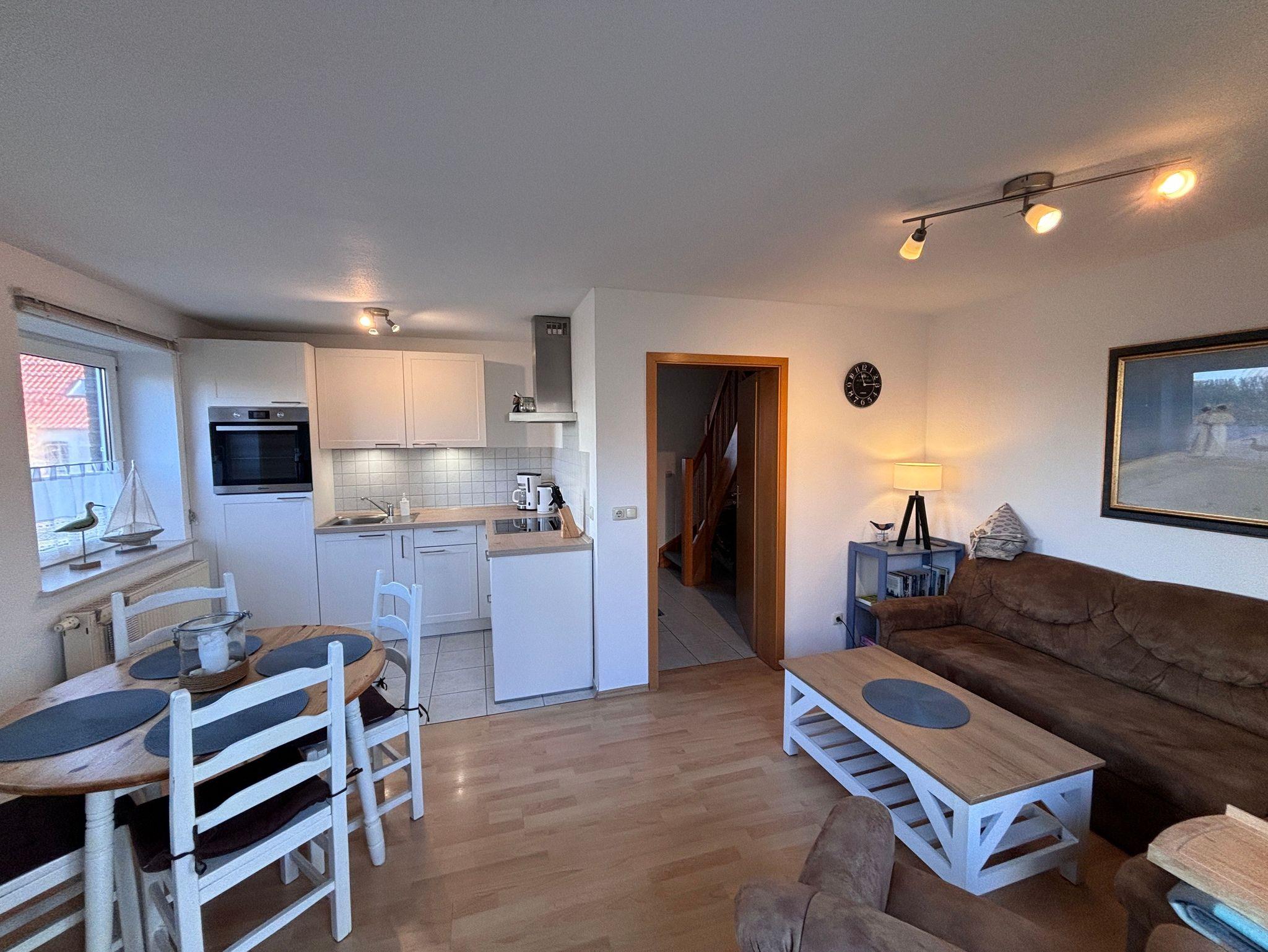 Die 3-Raum Ferienhaushälfte verfügt über ein Wohnzimmer mit TV, Radio, Ecksofa mit Schlaffunktion (Aufbettung), Sessel und Couchtisch. Die offene und helle Küche mit Kühlschrank,Ceranfeld, Backofen, Kaffeemaschine, Toaster und Wasserkocher bietet Ihnen alle erforderlichen Annehmlichkeiten.