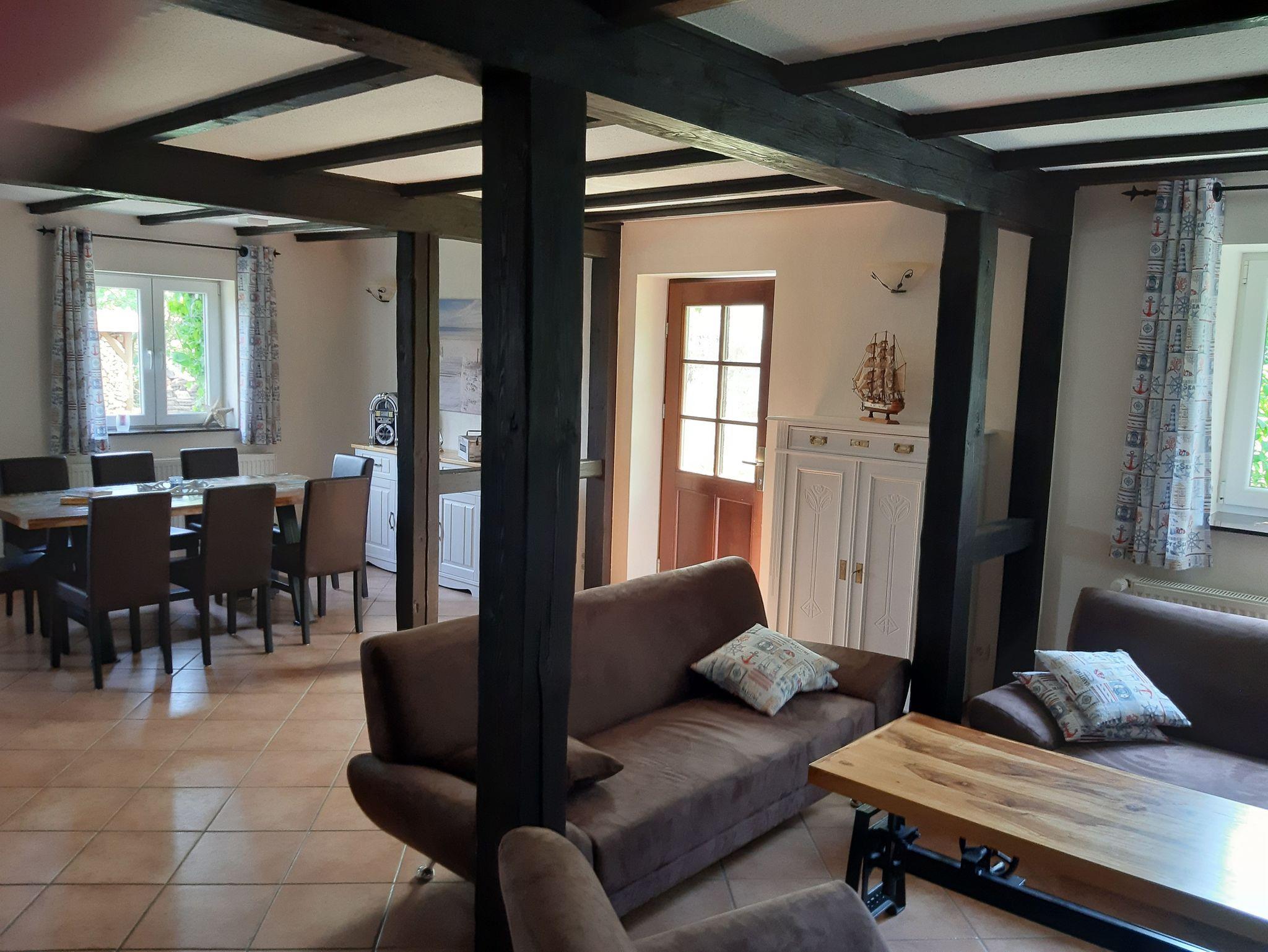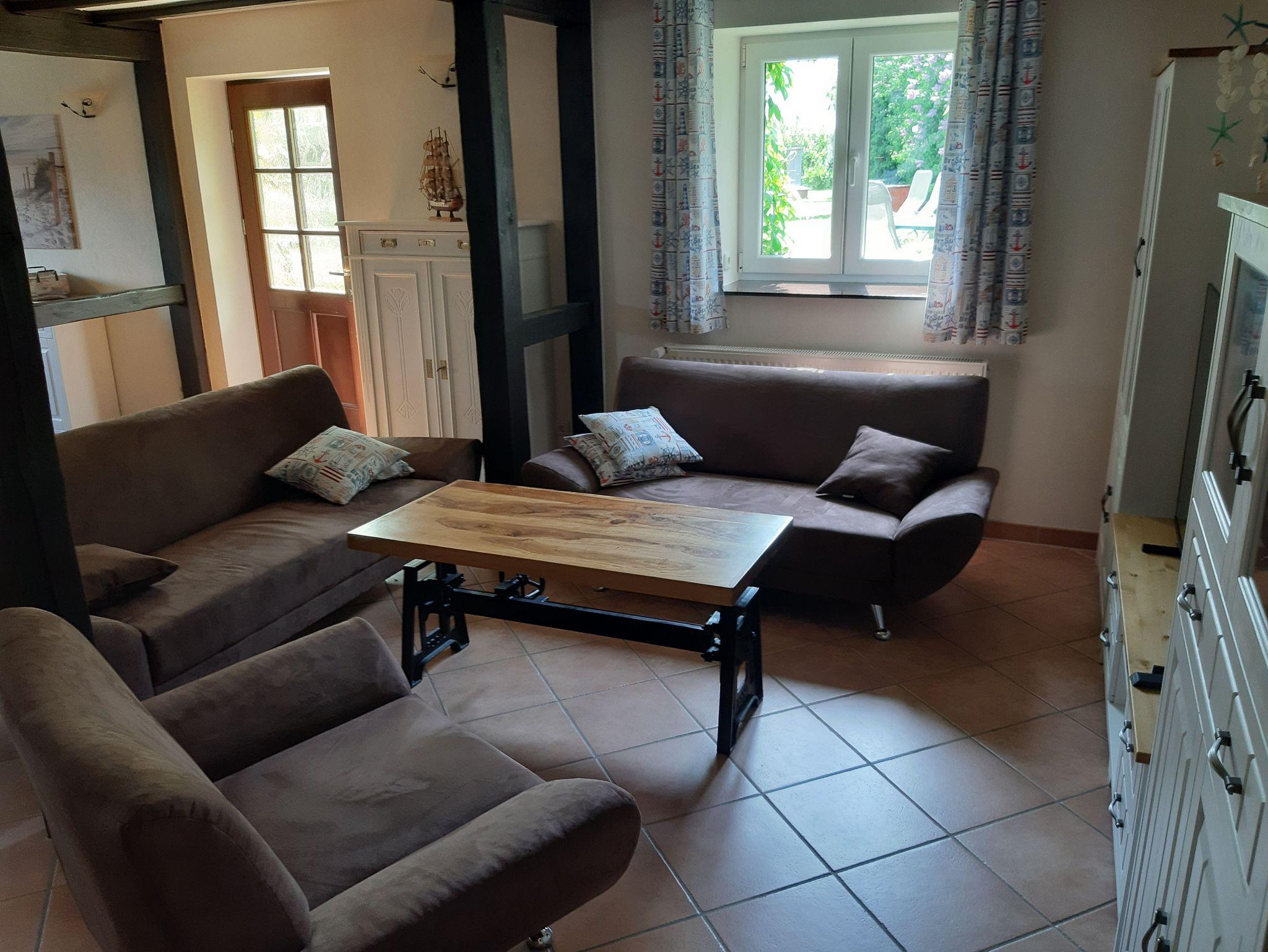 Diese Ferienwohnung verfügt über einen großen Wohn- und Küchenbereich, mit gemütlicher Sitzecke, SAT-TV und separatem Esstisch für 8 Personen. Die Küche wurde 2023 neu eingerichtet und ist mit Kücheninsel. Ceranfeld, Herd, Abzugshaube, Kühl- und Gefrierkombination sowie Kücheninsel ausgestattet.