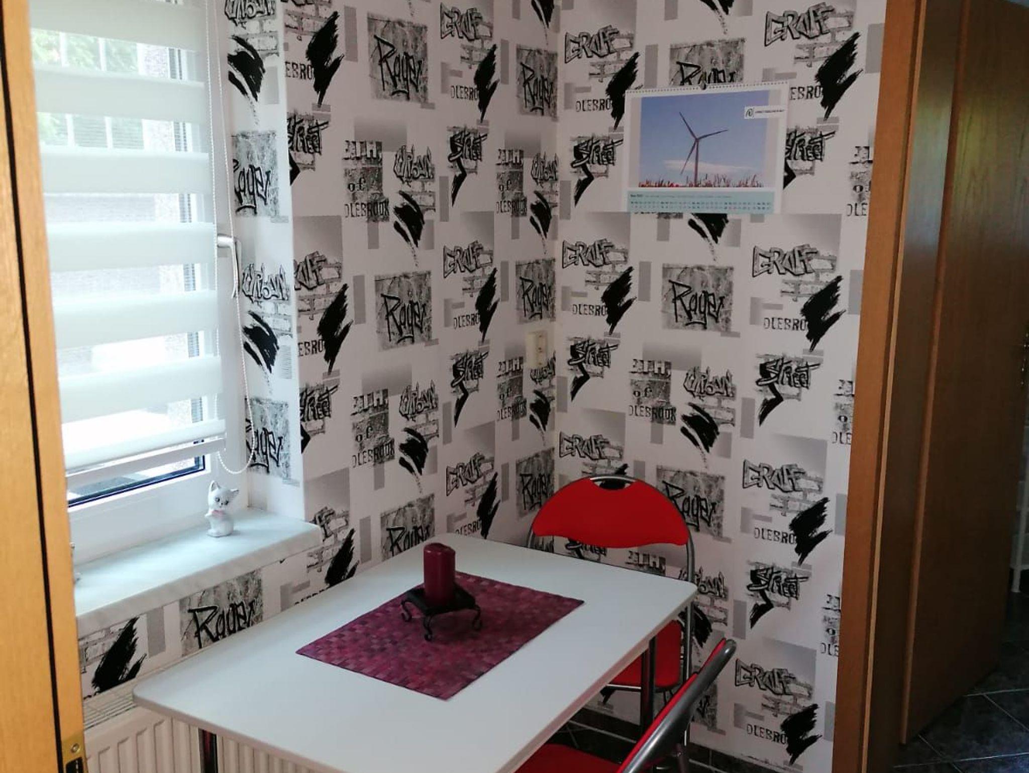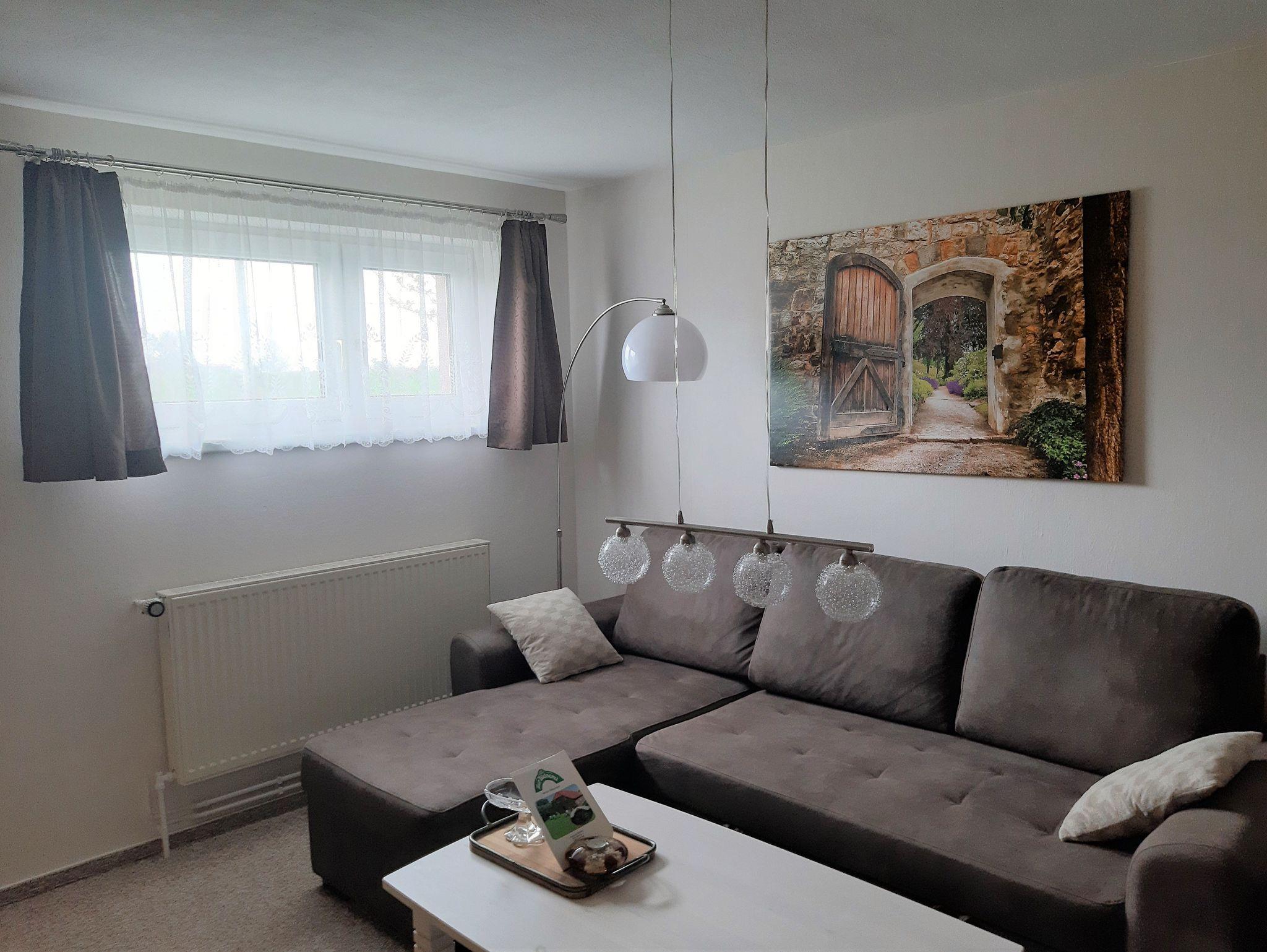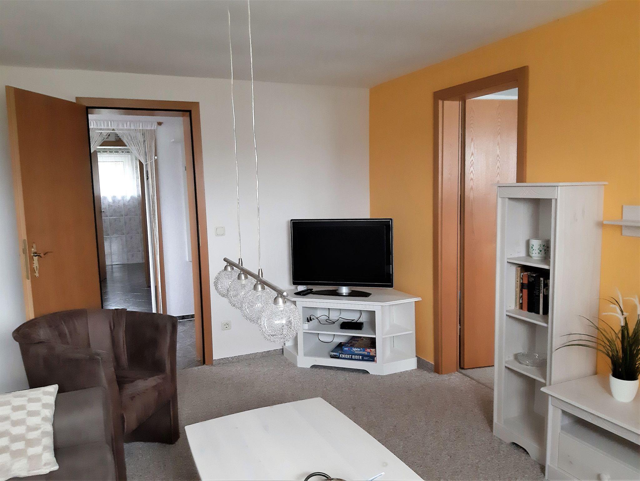 Die Ferienwohnung befindet sich im Souterrain unseres Einfamilienhauses und ist sehr ruhig gelegen. Sie verfügt über einen separaten Eingang. Das Schlafzimmer ist mit einem Doppelbett (Kopfteil verstellbar) und einem Etagenbett sowie Schrank und Nachtschränkchen ausgestattet. Das Wohnzimmer ist mit einer gemütlichen Sitzecke (ausziehbar zum Schlafsofa), Sat-TV, Radio, CD-Spieler, Wohnwand usw. eingerichtet. Die Küche verfügt über ein 2er Ceranfeld, Kühlschrank mit Gefrierfach, Microwelle, Wasserkocher, Kaffeemaschine sowie natürlich Besteck, Geschirr und Töpfe usw. Der Nassbereich ist mit Dusche, WC und Waschbecken ausgestattet.