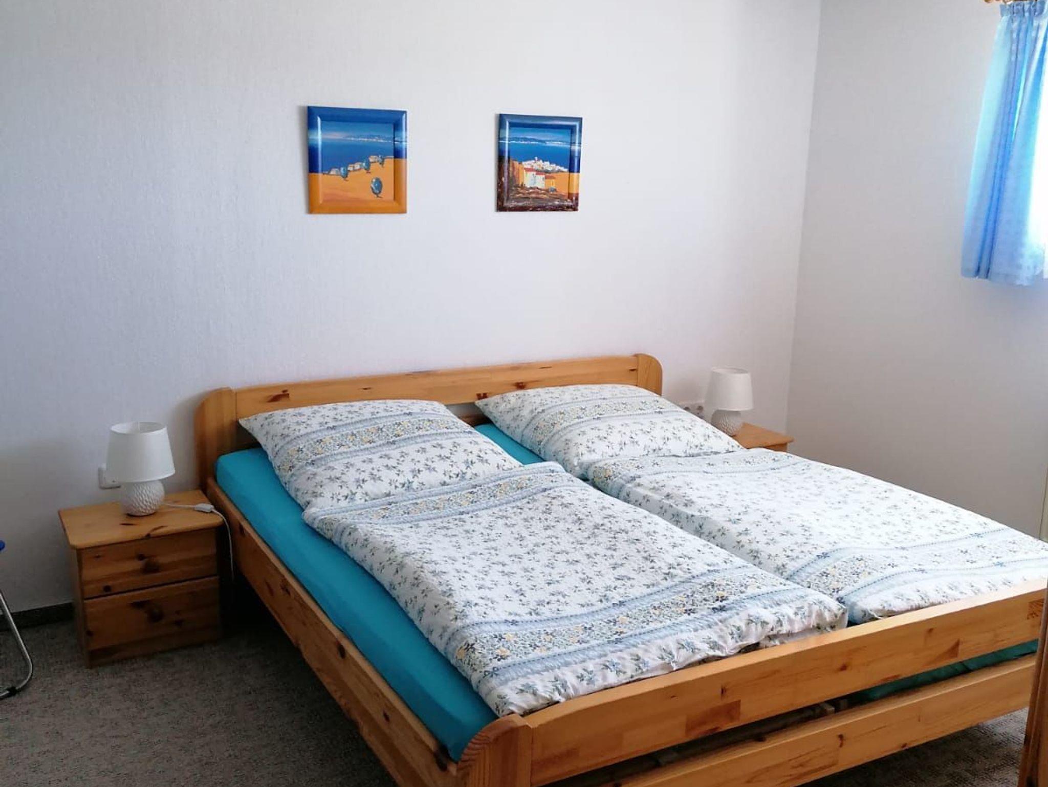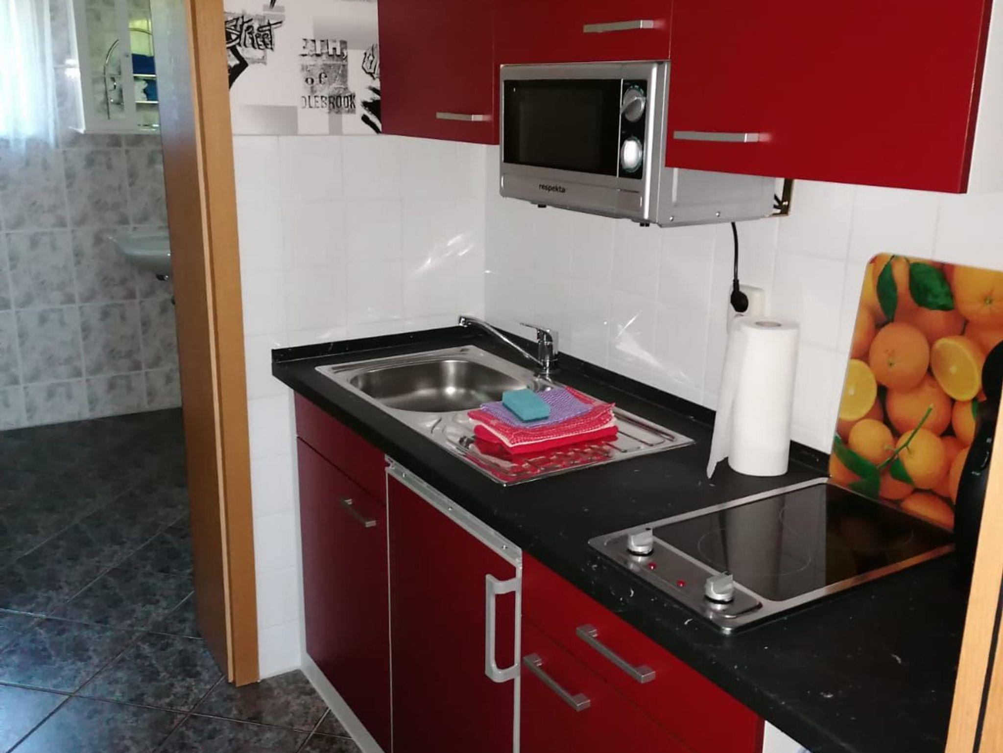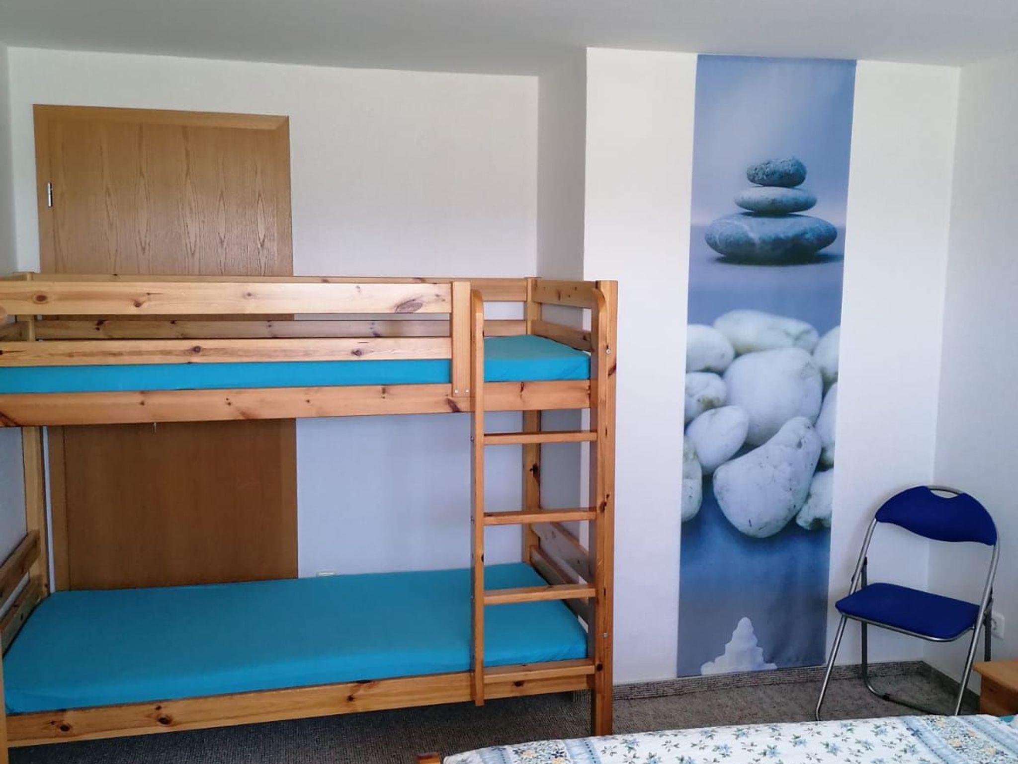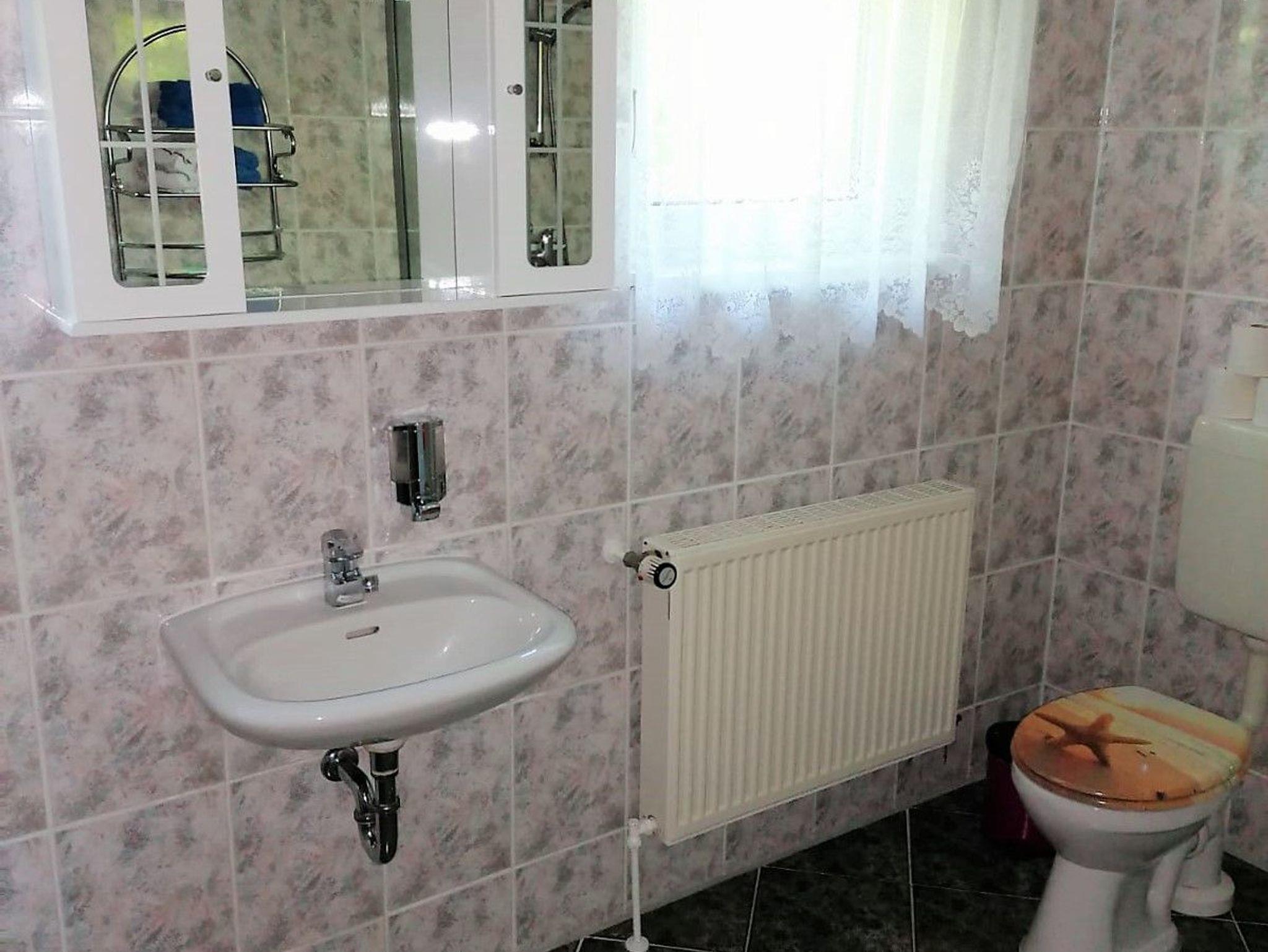 Die Ferienwohnung befindet sich im Souterrain unseres Einfamilienhauses und ist sehr ruhig gelegen. Sie verfügt über einen separaten Eingang. Das Schlafzimmer ist mit einem Doppelbett (Kopfteil verstellbar) und einem Etagenbett sowie Schrank und Nachtschränkchen ausgestattet. Das Wohnzimmer ist mit einer gemütlichen Sitzecke (ausziehbar zum Schlafsofa), Sat-TV, Radio, CD-Spieler, Wohnwand usw. eingerichtet. Die Küche verfügt über ein 2er Ceranfeld, Kühlschrank mit Gefrierfach, Microwelle, Wasserkocher, Kaffeemaschine sowie natürlich Besteck, Geschirr und Töpfe usw. Der Nassbereich ist mit Dusche, WC und Waschbecken ausgestattet.