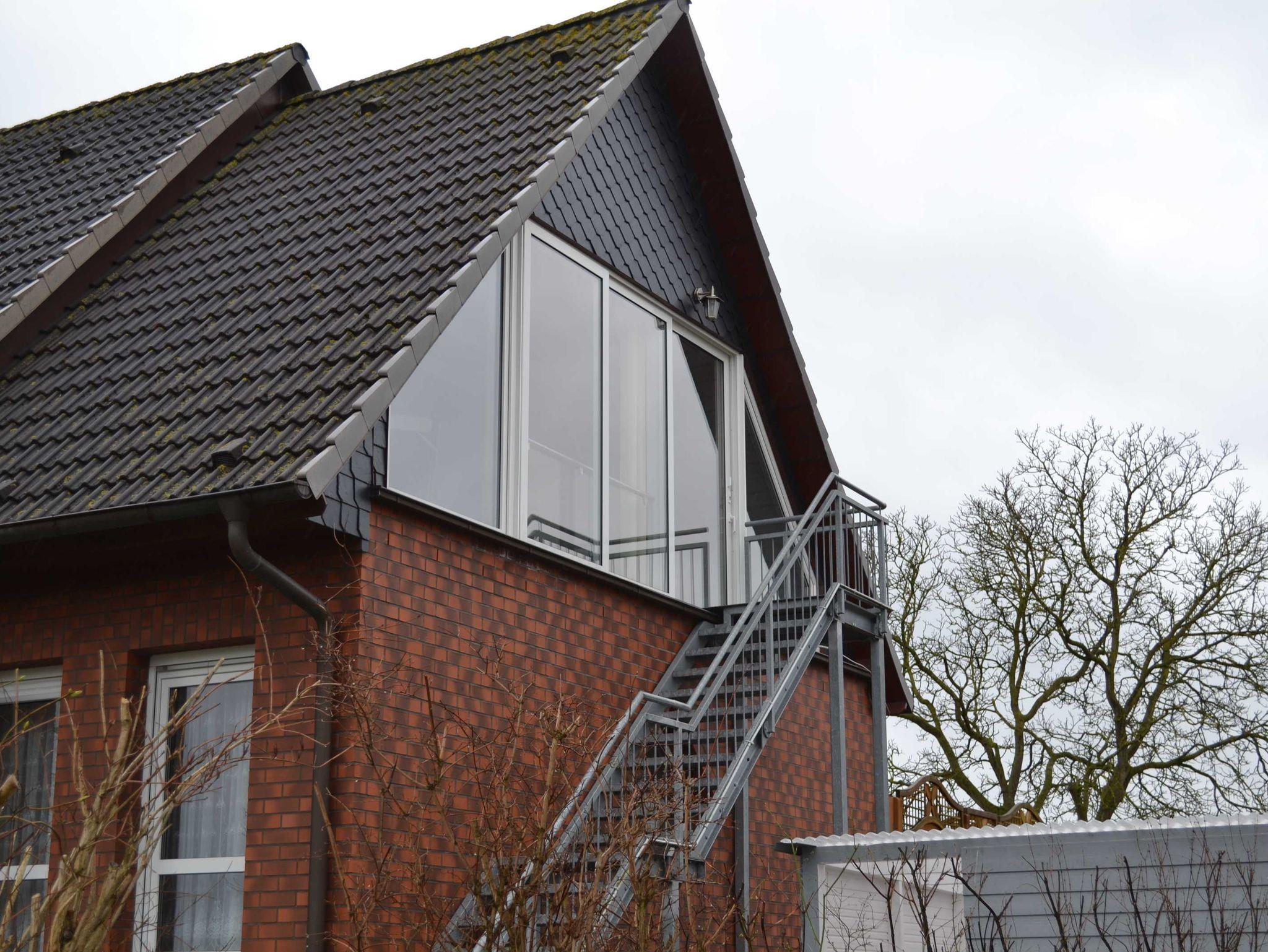 Die Ferienwohnung befindet sich im 1.Obergeschoss und ist über eine separate Aussentreppe zu erreichen. Diese führt auf die Loggia mit Glasschiebefront, über die Sie in die Ferienwohnung gelangen.