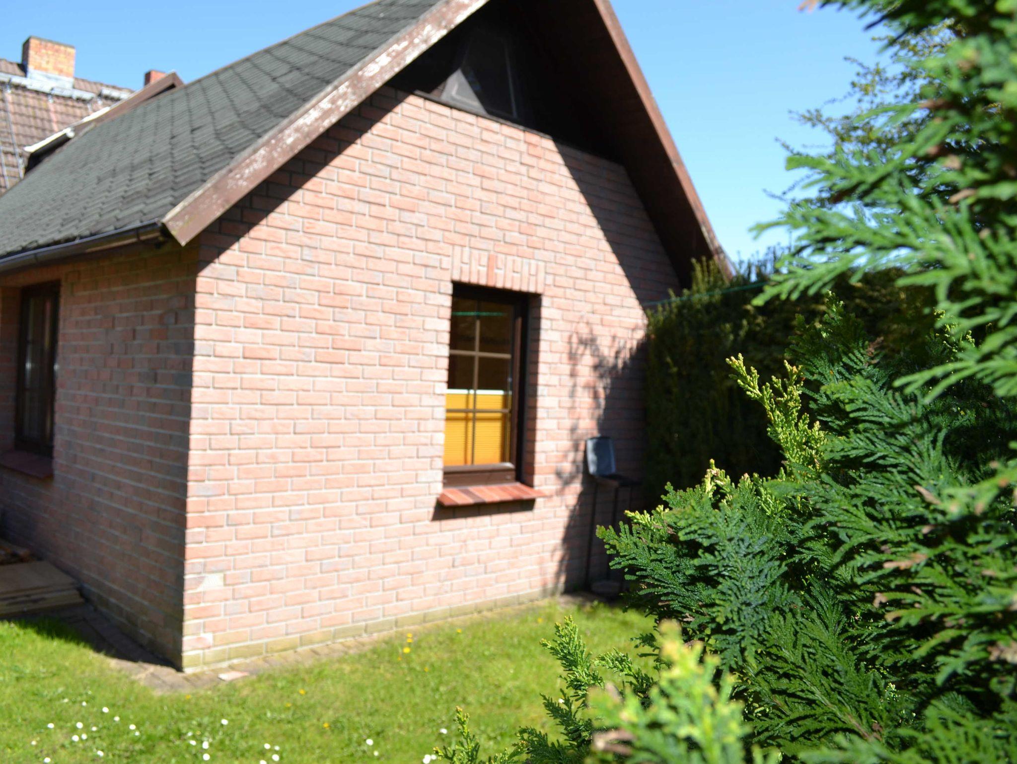 Das Ferienhaus befindet sich im Garten eines Einfamilienhauses in Kirchdorf, dem Hauptort der Insel Poel. Am Haus befindet sich eine Terrasse mit Gartenmöbeln und Rasenfläche.