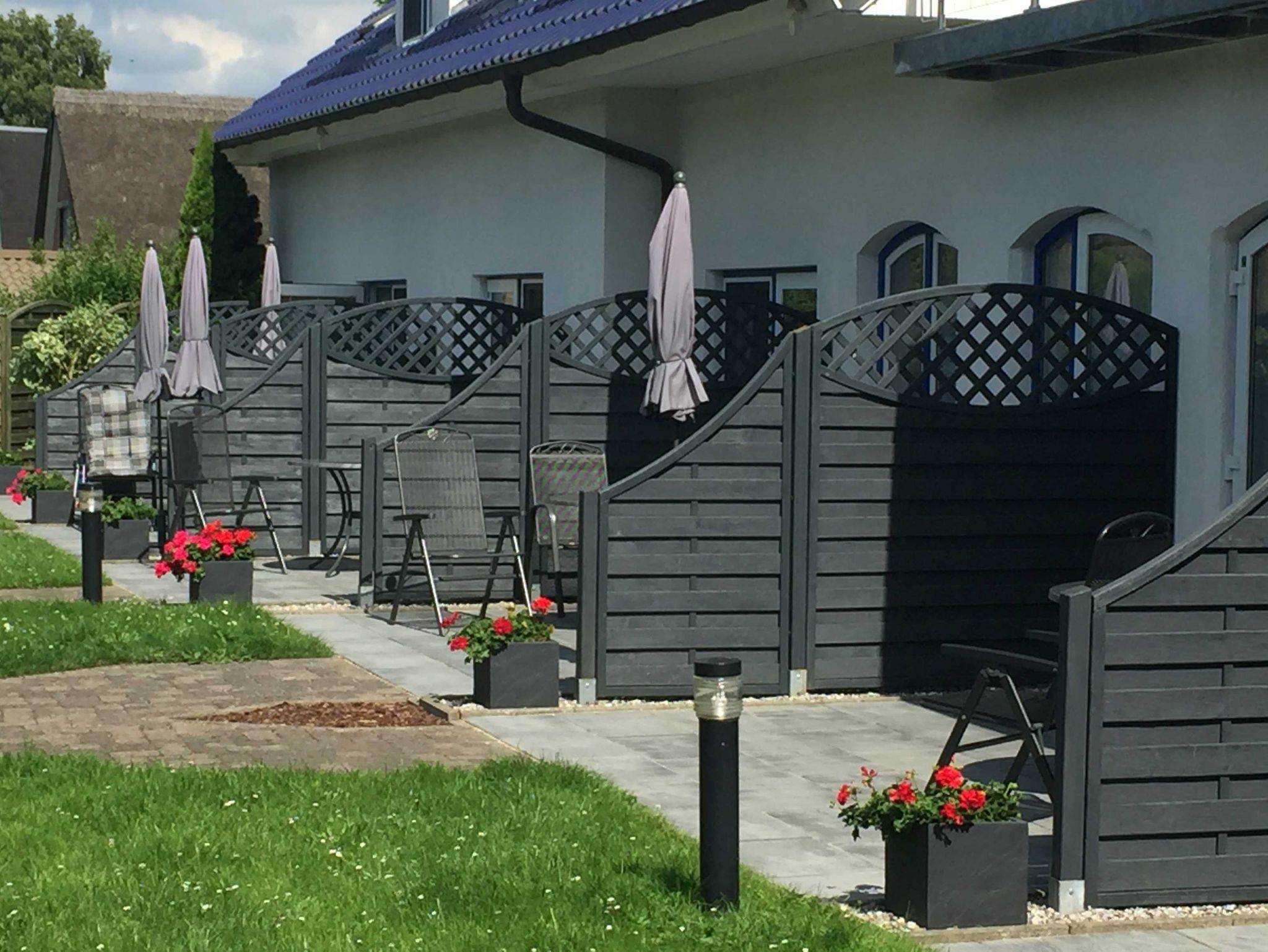 Vor den Appartements wurden Terrassen angelegt, auf denen Sie den Tag mit einem gemütlichen Frühstück beginnen können. Zu allen Wohneinheiten gehören Terrassen- und Balkonmöbel, sowie ein kostenfreier Parkplatz.