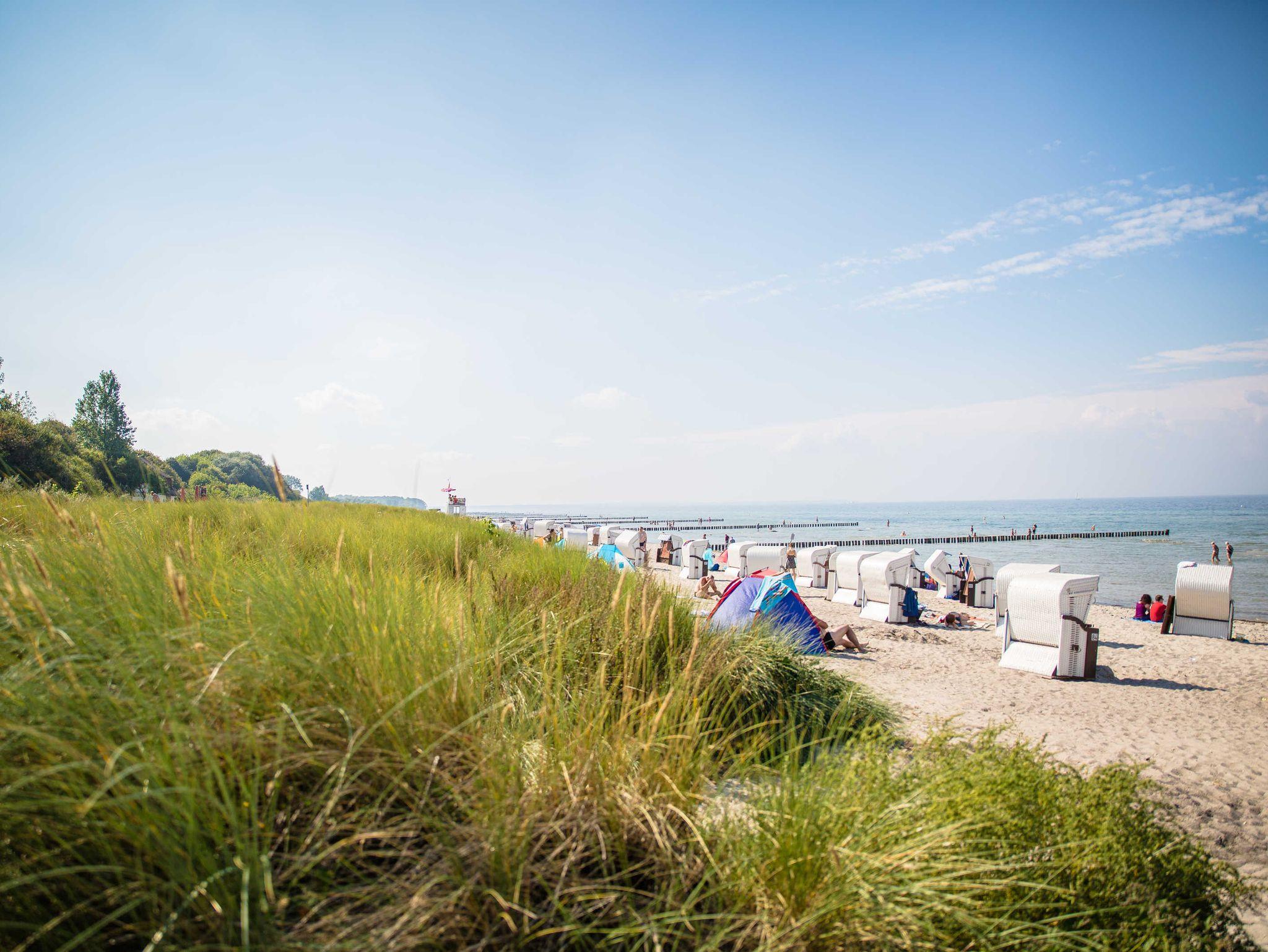Gegenüber der Bungalows liegt direkt ein Strandaufgang , sodass Sie nur die schmale Promenadenstraße überqueren müssen und sich schon in den Dünen befinden.