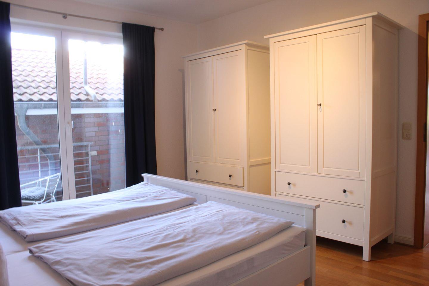 Die zwei separaten Schlafräume sind im nordischen Stil eingerichtet und bieten neben Stauraum für Ihre Garderobe auch komfortable Betten (Doppelbett oder Etagenbett) für einen erholsamen Schlaf.