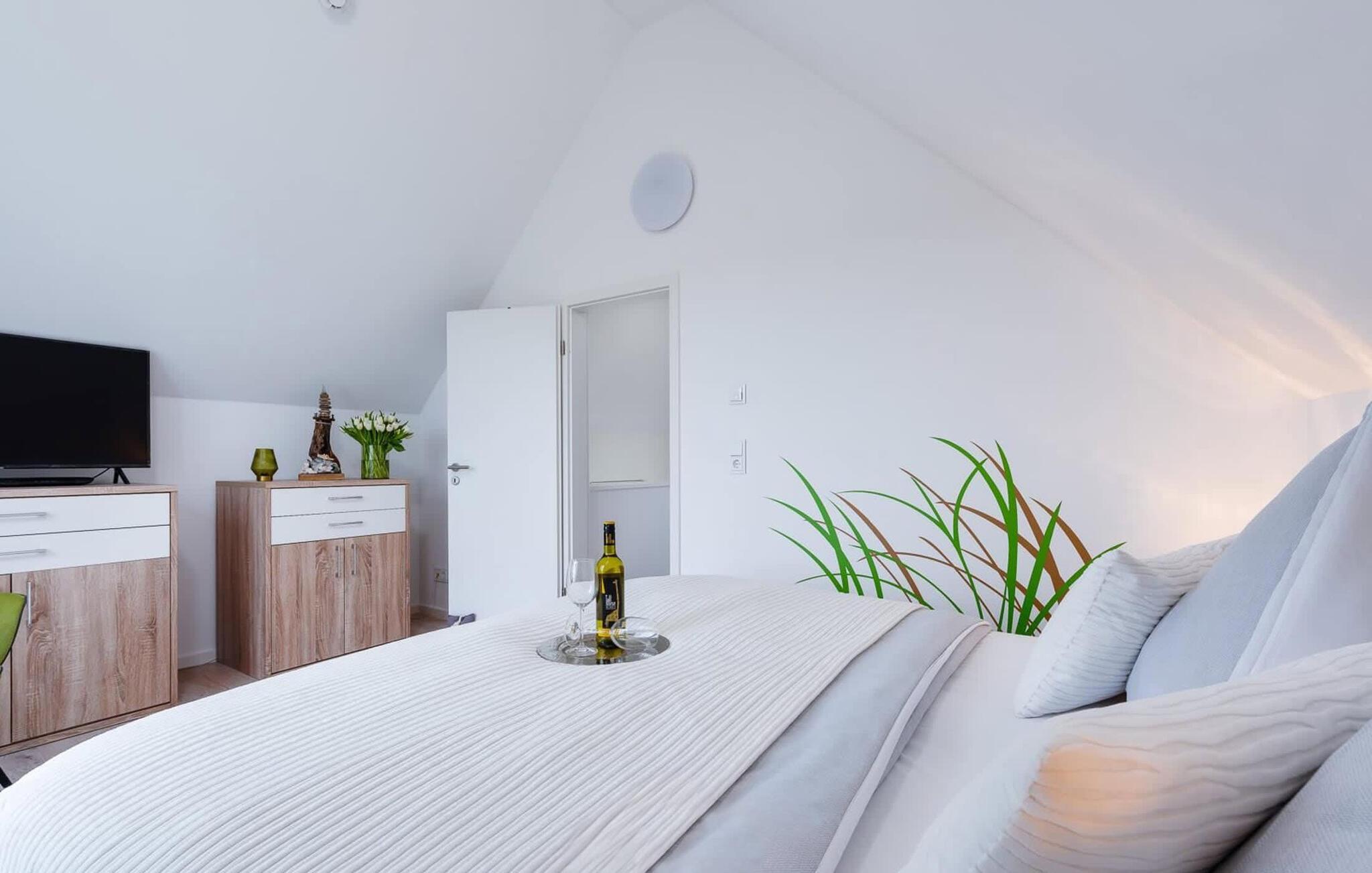 Kun få meter fra Weidefelds sandstrand og havnepromenaden i OstseeResort Olpenitz imponerer dette feriehus med en perfekt beliggenhed og topfaciliteter med privat wellness-område, gulvvarme og pejs. Det grønne område omkring huset inviterer store og små til at solbade, lege og slappe af. Østersøen, sandstranden Weidefelder og sejl- og sportsbådshavnen i OstseeResort Olpenitz kan nås på mindre end 5 minutter til fods.