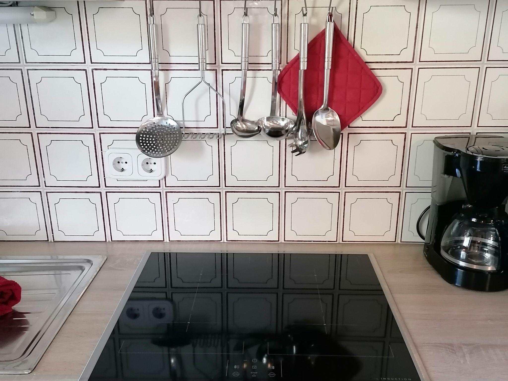 Küche: Moderner 4-Platten-Induktionsherd, moderner Umluftbackofen, Spülmaschine, Kühlschrank mit 3-Sterne-Gefrierfach. Kaffeemaschine, Toaster uvm. - sehr umfangreiche Ausstattung mit Kochwerkzeugen/Geschirr.