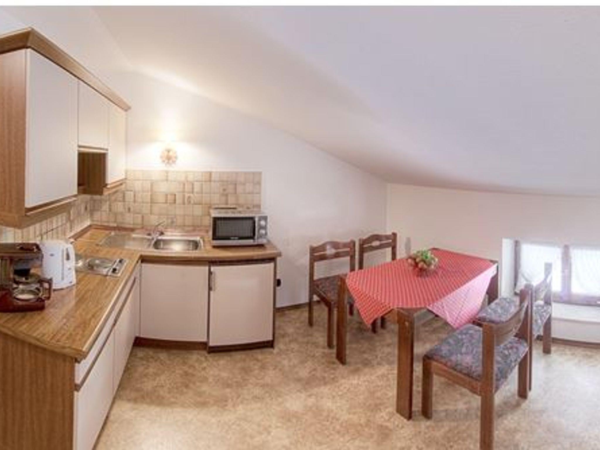 Die 48 qm große Ferienwohnung Nr. 8 befindet sich im Dachgeschoss des Gebäudes und ist für 2 Erwachsene und maximal 2 Kinder bis 12 Jahre geeignet. Die Komfortabel ausgestattete Ferienwohnung befindet sich in sonniger und ruhiger Lage. In der Ferienwohnung gibt es einen Wohnraum, zwei Schlafzimmer und ein Badezimmer. Die Küche ist ausgestattet mit einem 2-Platten Herd, Kaffeemaschine, Toaster, Kühlschrank mit Gefrierfach, Wasserkocher, Mikrowelle.