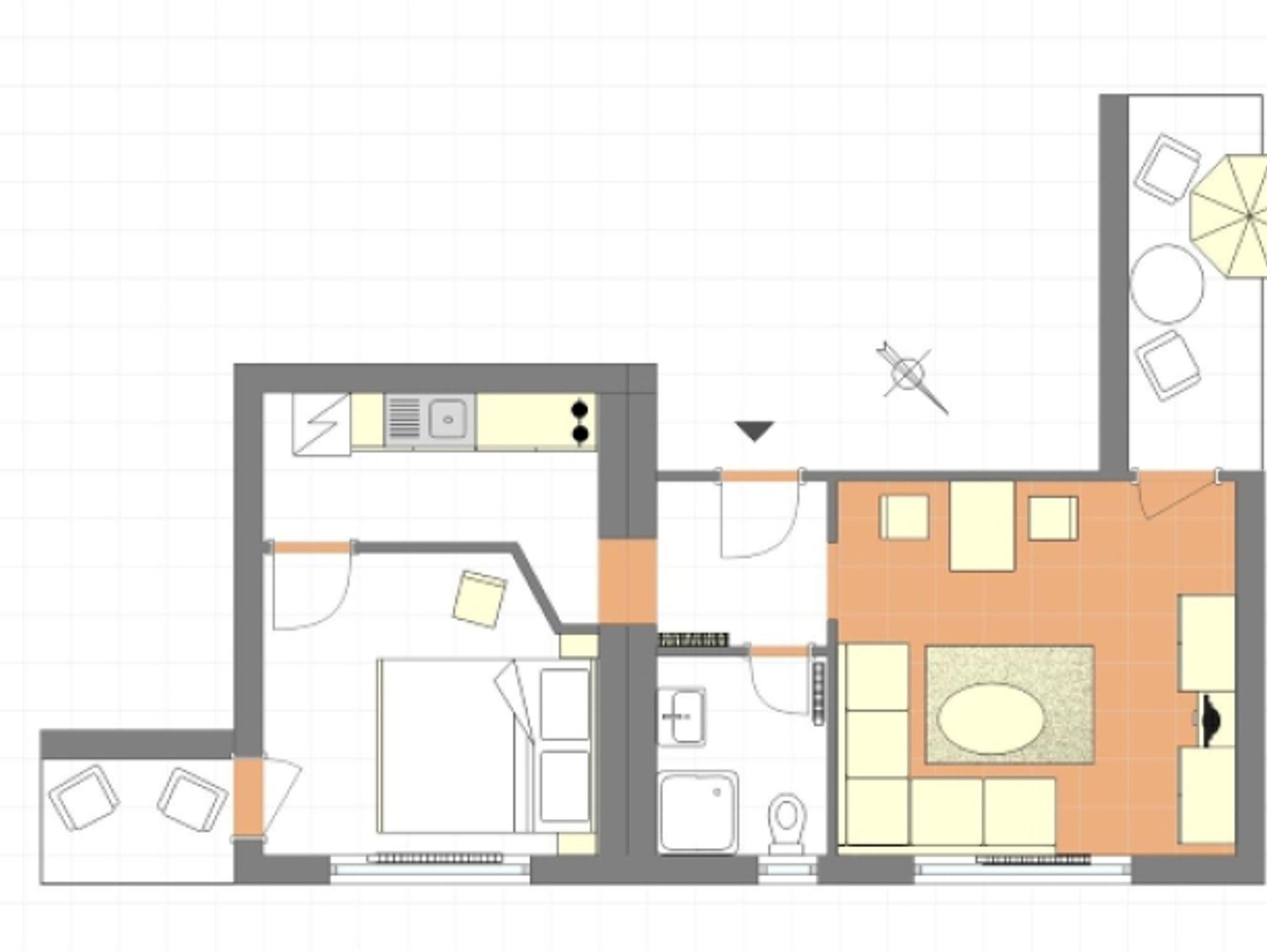 Haus Sonneck - Chiemgau Karte, Ferienwohnung Zinnkopf für 2 Personen mit Balkon, separater Schlafraum, 40 m²