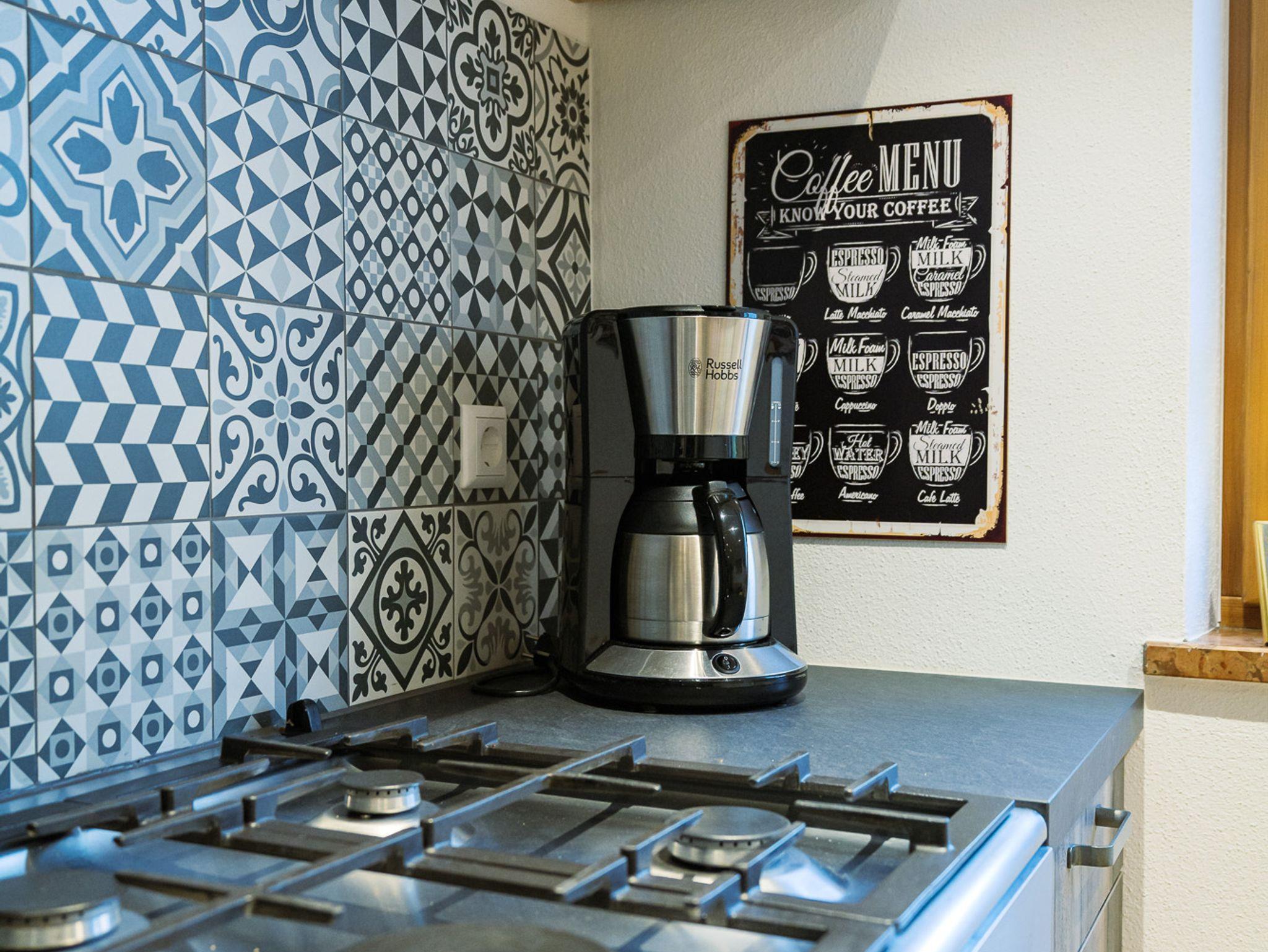 Beide FeWo mit voll ausgestatteter Küche, incl. Kaffeemaschine, Toaster, Eierkocher, Wasserkocher, Kühlschrank mit Tiefkühlfach, Herd mit Backofen. Kostenloses W-Lan.