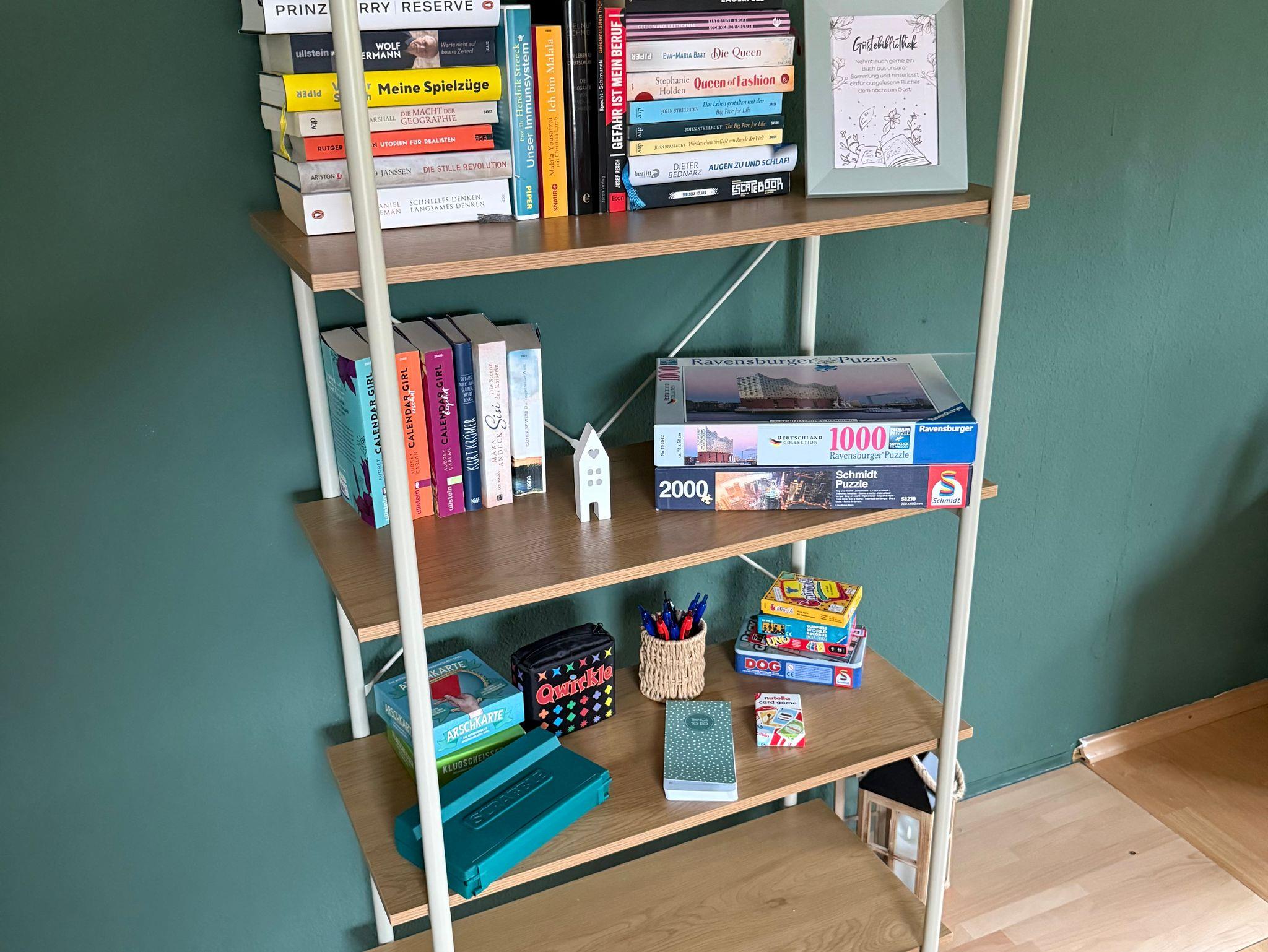 • Wohnzimmer: ausziehbare Schlafcouch für 2 Personen, Esstisch für 4 Personen, Gästebibliothek, Spielesammlung