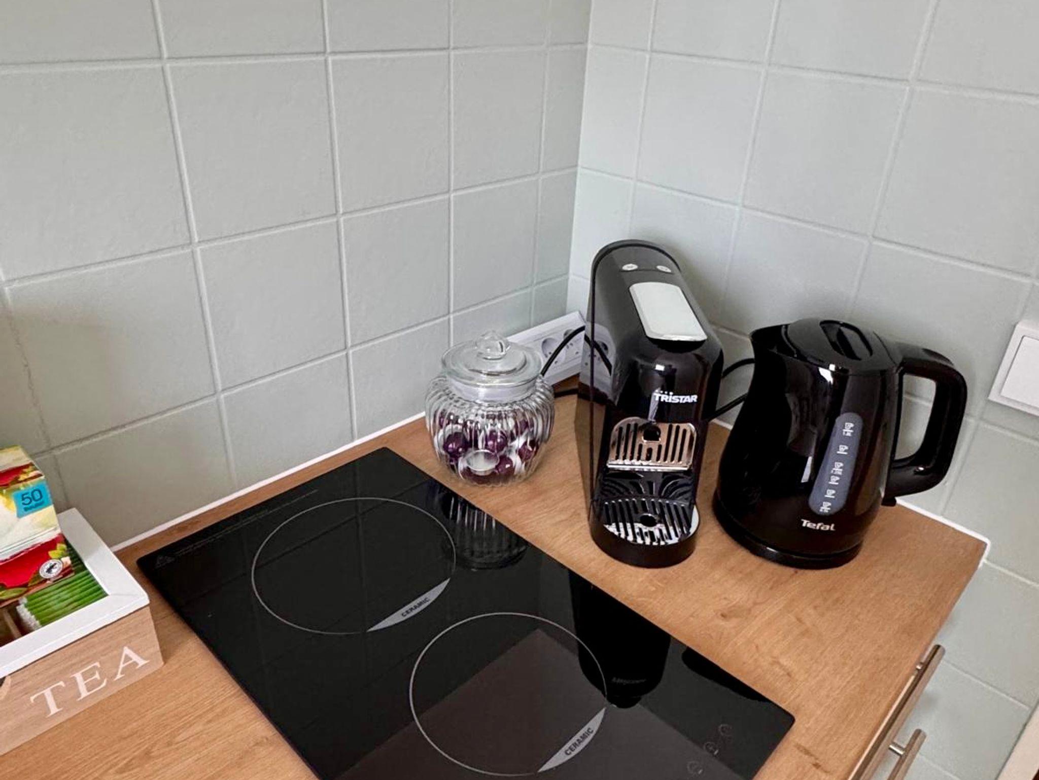 • Küche: voll ausgestattete Küche, zwei Kochplatten, Geschirrspüler, Kühlschrank, Auswahl an Tee, Gewürzen und Öl (erspart zusätzliche Einkäufe)