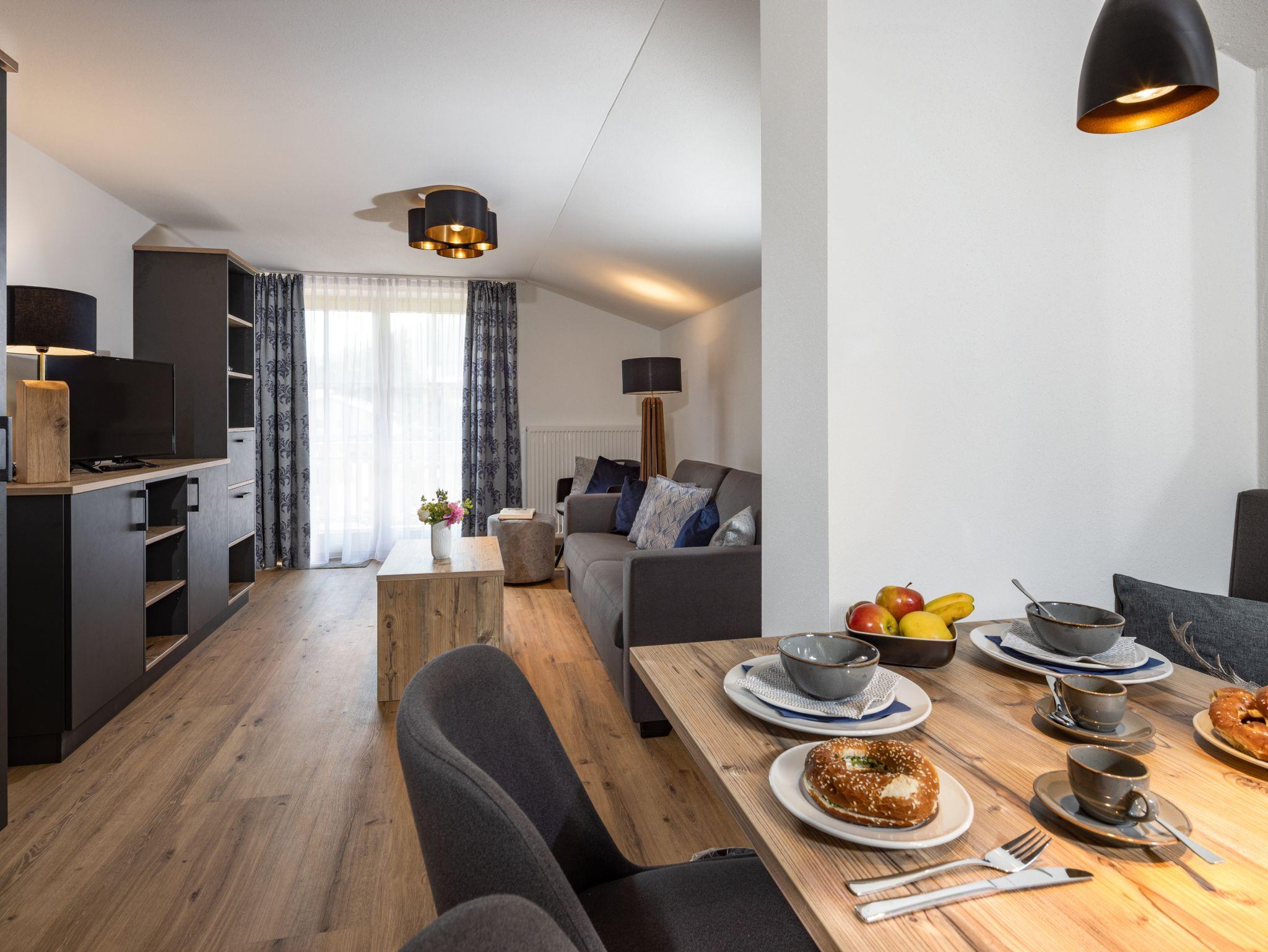 Hubertus Appartements - Chiemgau Karte, Appartement 5 Gamskogel bis 3 Personen, Küche, 1 Schlafzimmer, 50 qm