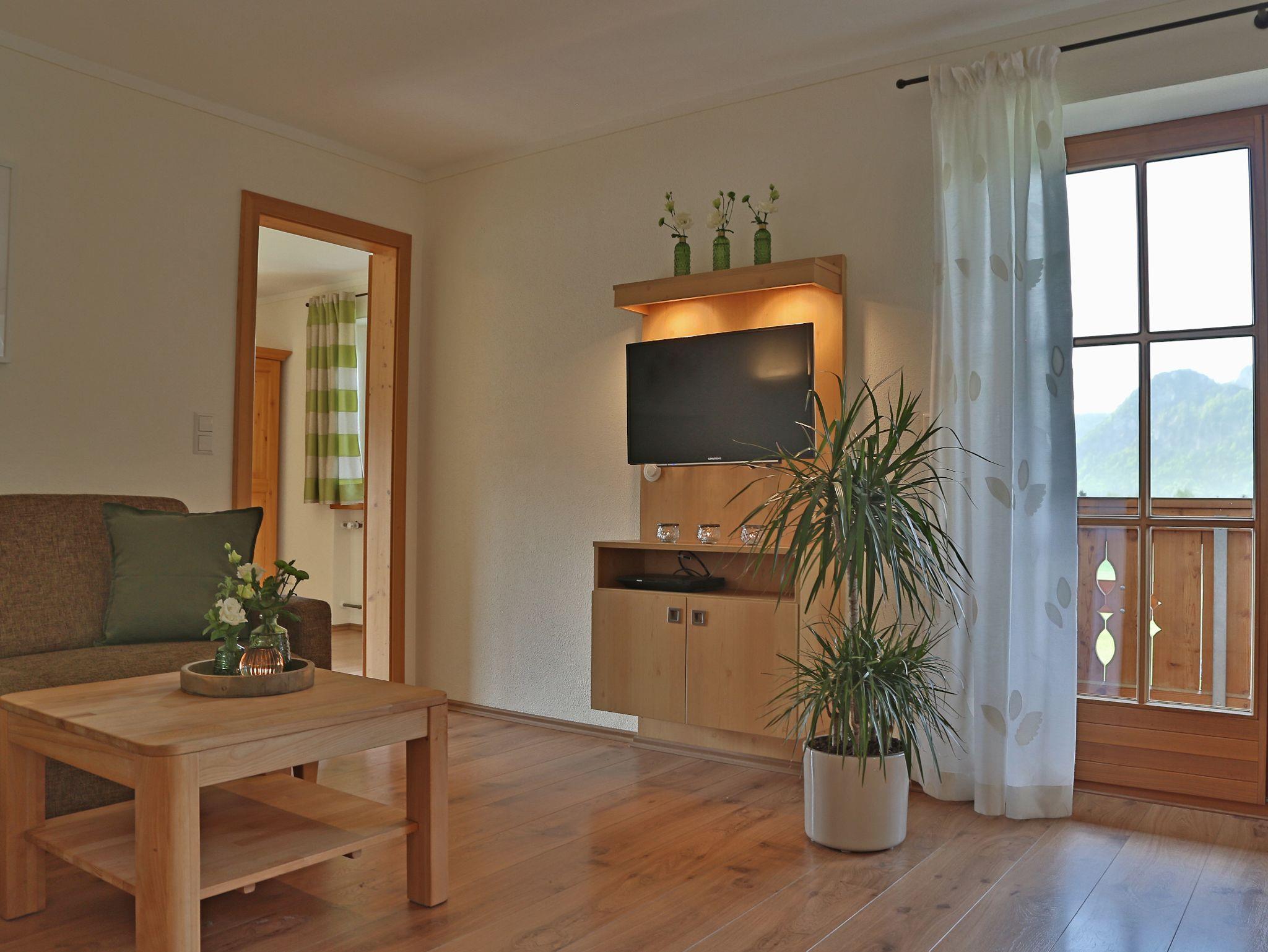 Neue, freundliche und exklusiv ausgestattete Ferienwohnung mit Balkon und Bergblick. Zusätzliche Schlafmöglichkeit für 2 Personen im Wohnzimmer.