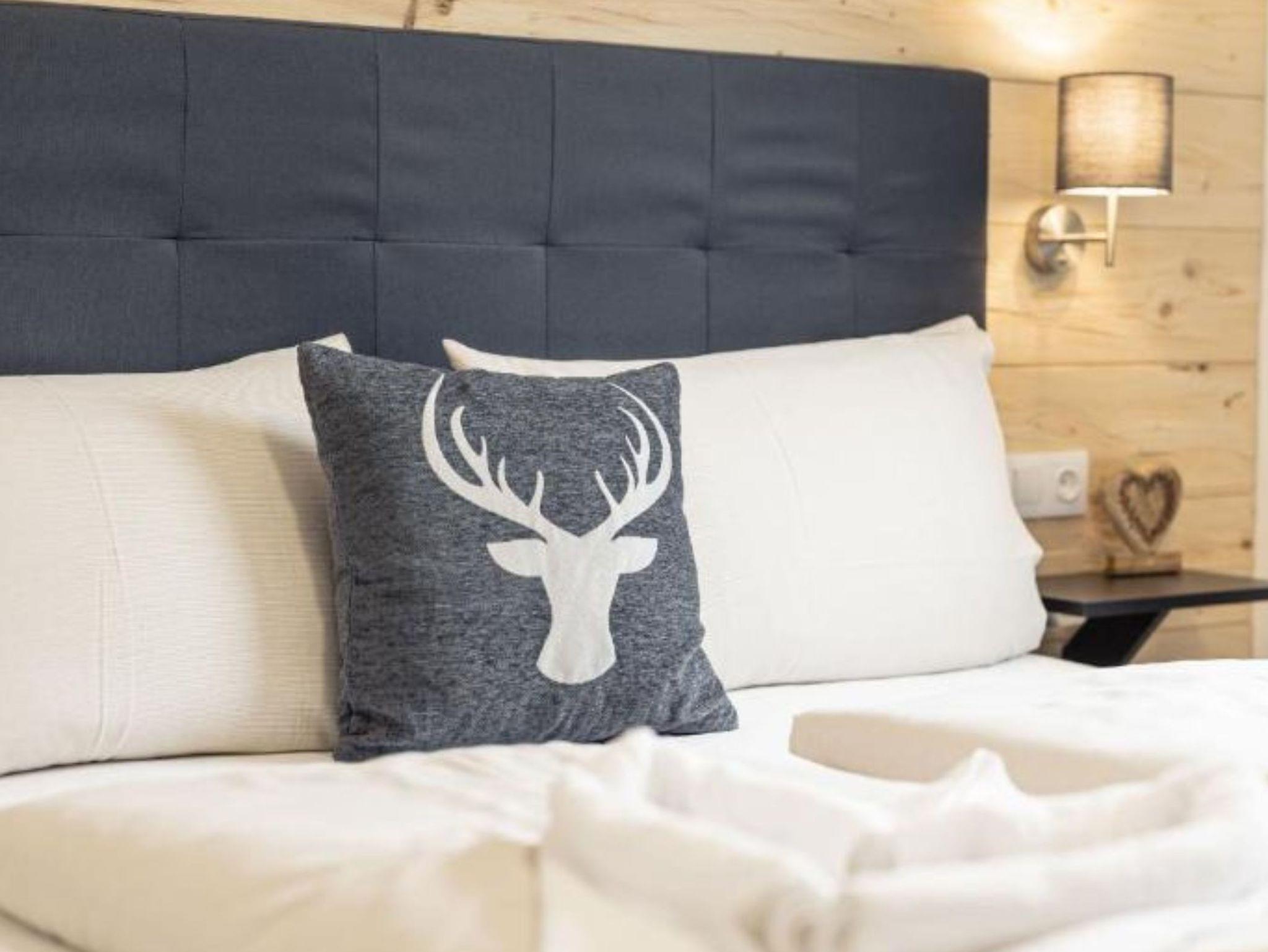 Die Schlafzimmer sind großzügig geschnitten und mit je einem komfortablen Doppelbett ausgestattet. Warme Holzmöbel, ein geräumiger Kleiderschrank und große Fenster sorgen für eine gemütliche, helle Atmosphäre. Vom Zimmer aus genießen Sie einen schönen Blick auf die umliegenden Berge oder den Gartenbereich. Verdunkelungsvorhänge sorgen für erholsamen Schlaf.