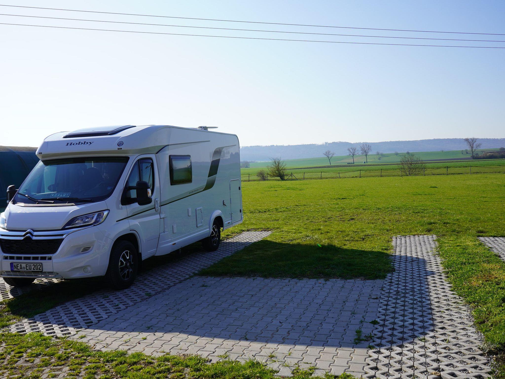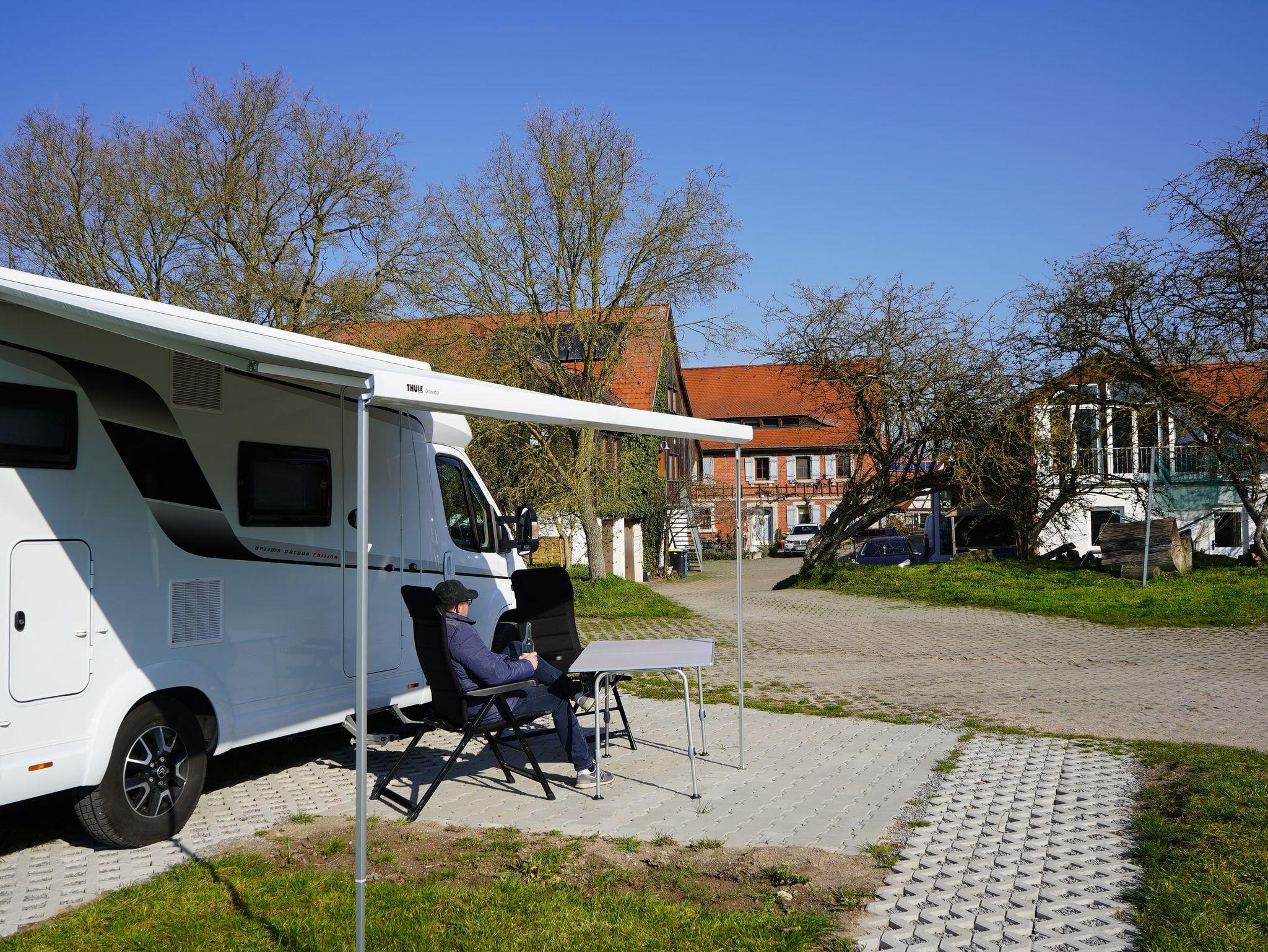 Unsere 3 Wohnmobilstellplätze befinden sich auf der Wiese hinter dem Hof. Der Untergrund ist befestigt und ein Stromanschluss ist vorhanden. Sie können gerne die öffentlichen WC`s am Hof benutzen.