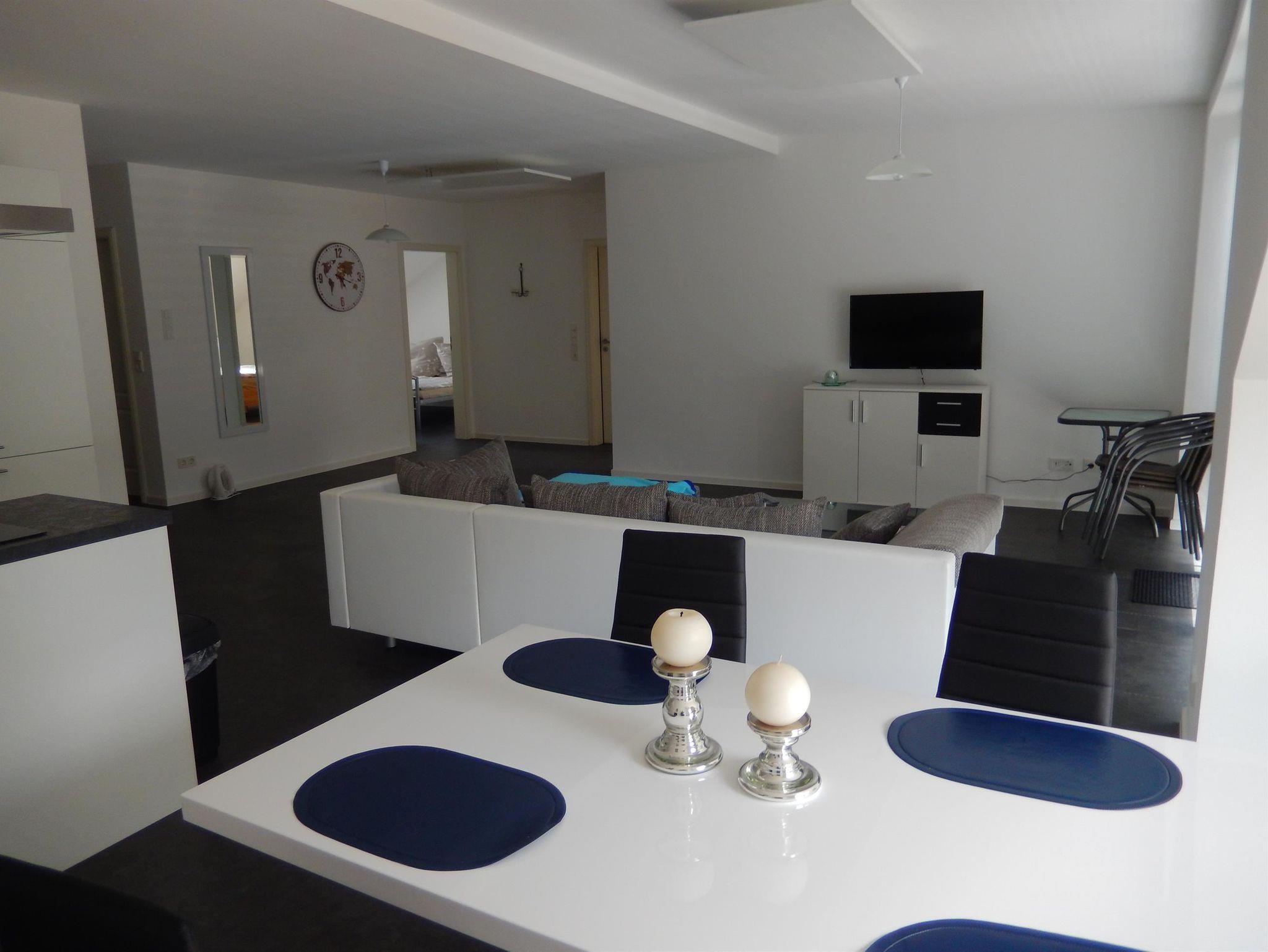 Die Ferienwohnung Nr. 7 ca. 101 qm ist eine Dachgeschosswohnung. Die Wohnung verfügt über 3 sep. Schlafzimmer 1 x Doppelbett, 1 x 2 Einzelbetten 80 x 195 cm und 1 x Einzellbett. Bad mit ebenerdiger Dusche/WC. Küche mit Geschirrspülmaschine, Kühlschrank, Kochinsel. Großer Flachbildfernseher, Sitzmöglichkeiten, Balkon. Keine Klimaanlage.