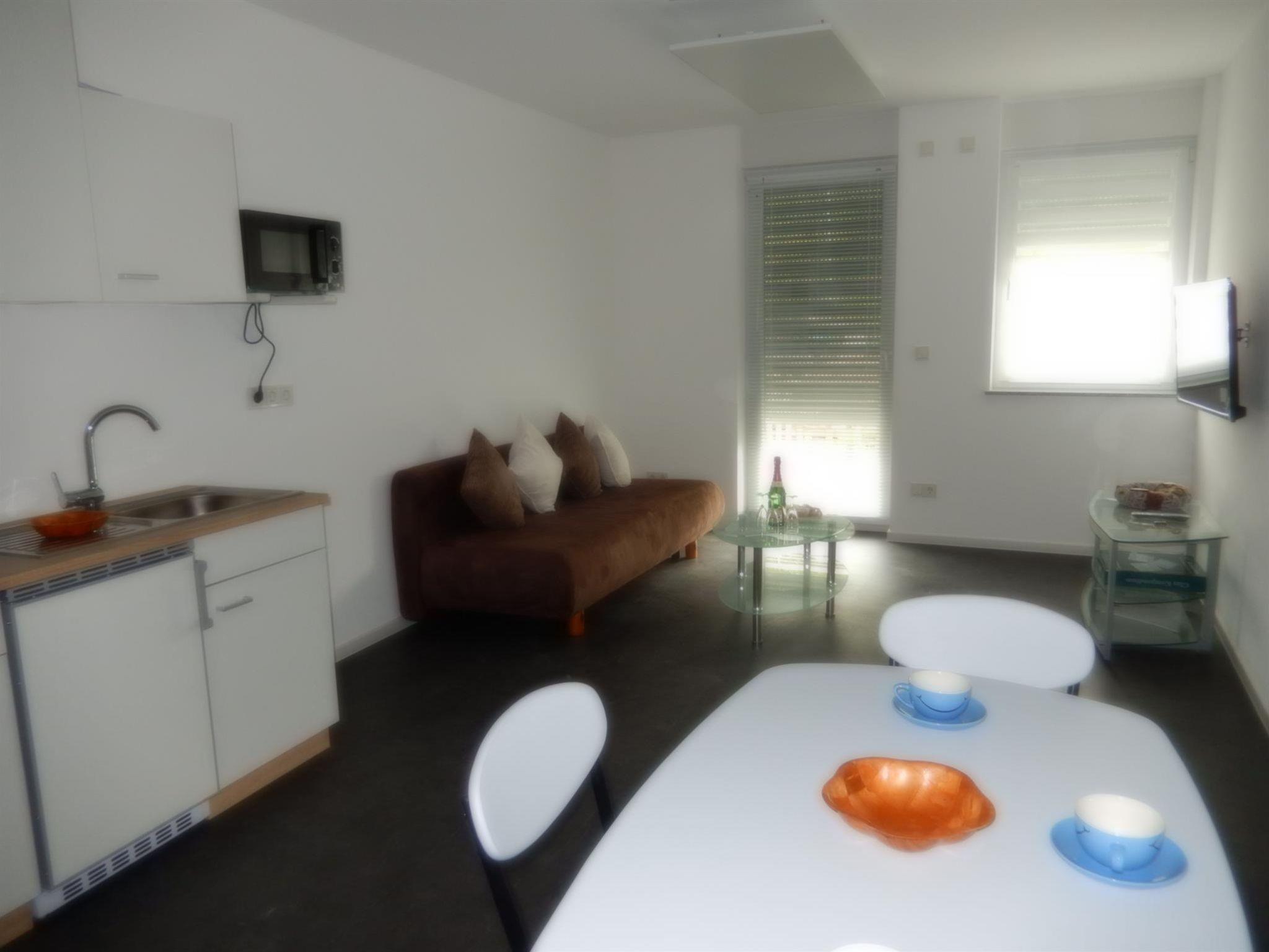 Die Ferienwohnung Nr. 4 verfügt über ein sep. schlafzimmer mit Doppelbett, Bad mit ebenerdiger Dusche und WC sowie Balkon, Kochplatte, Mikrowelle. Keine Geschirrspülmaschine, kein Backofen!