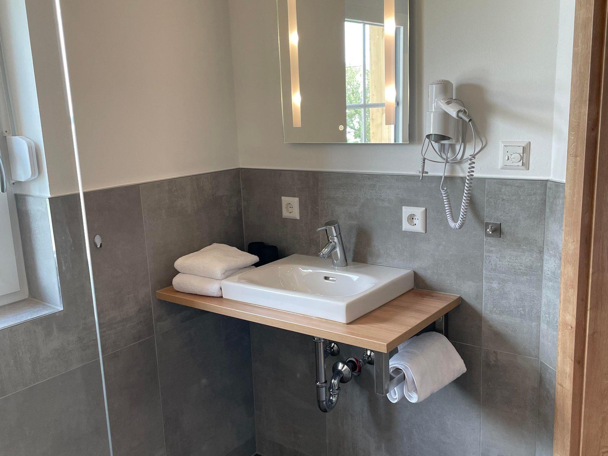 Tisch gefehlt. Sehr schöne Dusche mit WC. In unserem Zimmer auch leider