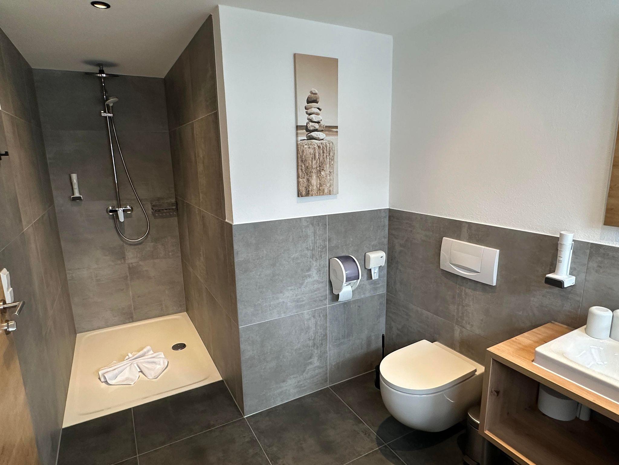 Tisch gefehlt. Sehr schöne Dusche mit WC. In unserem Zimmer auch leider
