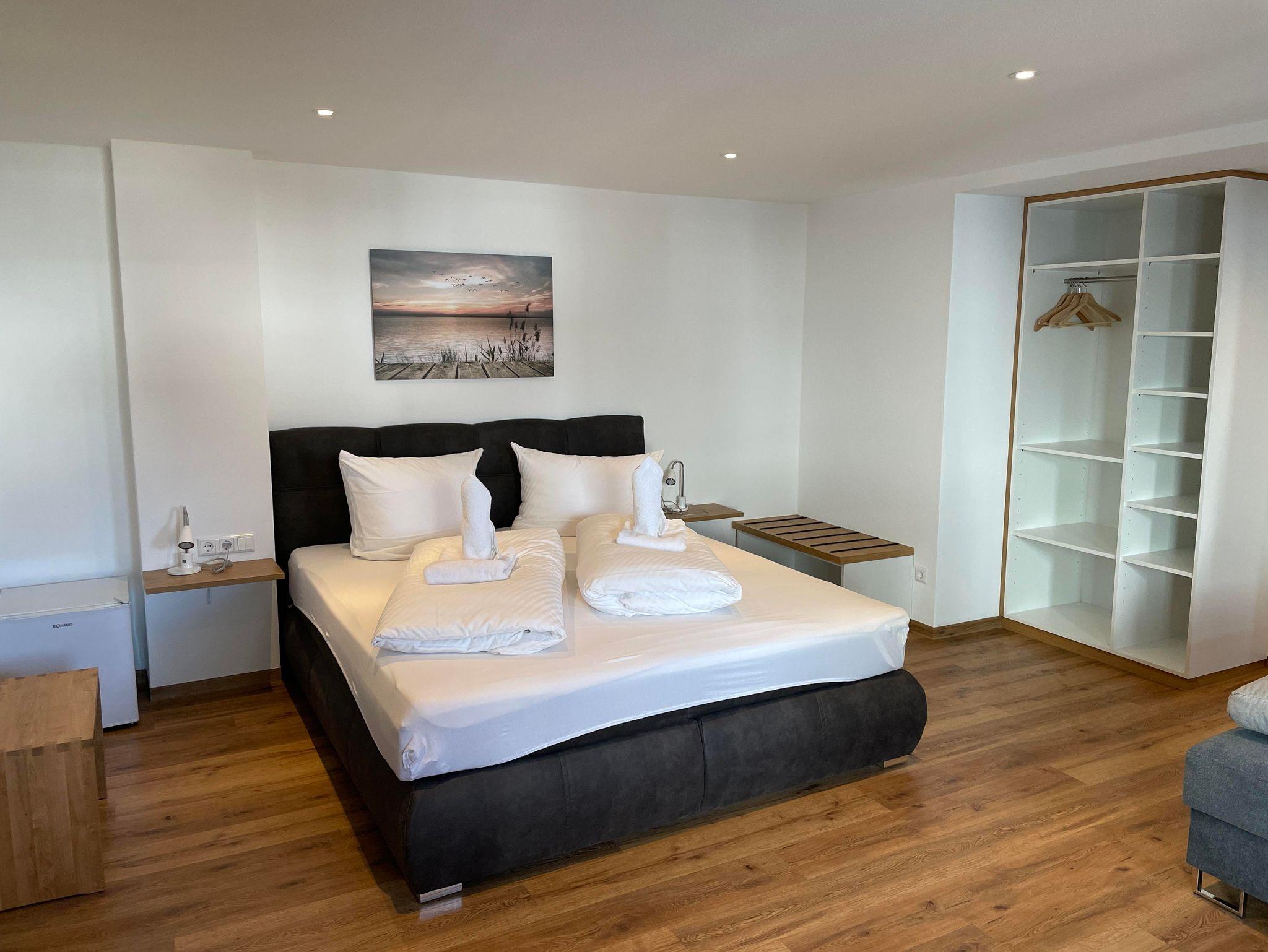 Modern und neu. Unser Superior Zimmer mit Boxspringbett, Schlafcouch, TV, Bad/WC mit begehbarer Dusche, Tisch, freies W-LAN