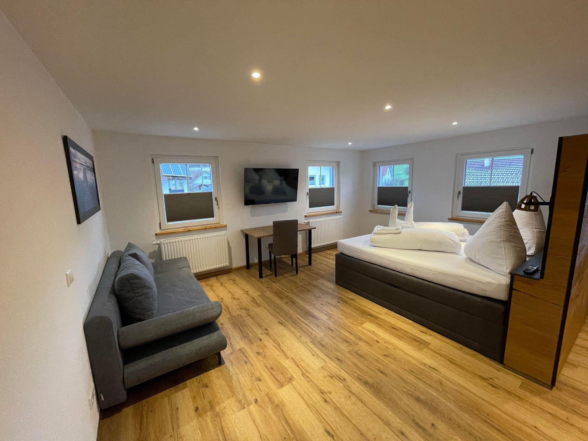 Komplett neu renoviertes Landgasthaus (gutbürgerliche Küche) in ruhiger Lage mit 6 Doppelzimmer, 3 Superior Zimmern und 6 Ferienwohnungen. Familienbetrieb mittlerweile in der 4. Generation von Familie Mayer geführt. Schöner Biergarten mit Spielplatz, Badsee, großer und kleiner Ursee in der Nähe und viele Wandermöglichkeiten. Nur wenige Kilometer vom Center Parcs Allgäu entfernt.