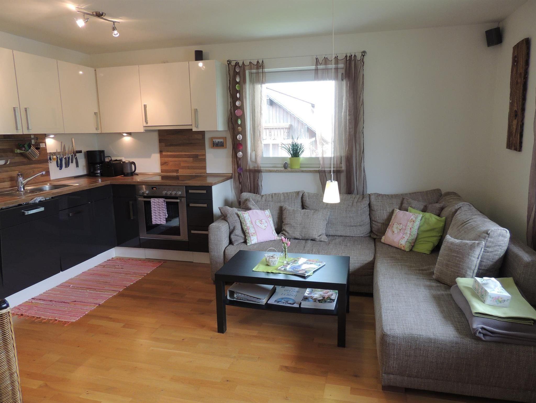 Die Ferienwohnung hat einen separaten Eingang (Außentreppe in den ersten Stock) und ist mit einer gemütlichen Wohnküche (Spülmaschine, Koch- und Essgeschirr) mit Sofaecke und TV (Flachbild) ausgestattet, von der das Schlafzimmer mit Doppelbett erreichbar ist. Im Bad (Dusche, WC) steht den Gästen eine Waschmaschine zur Verfügung, außerdem gibt es WLAN im Haus.