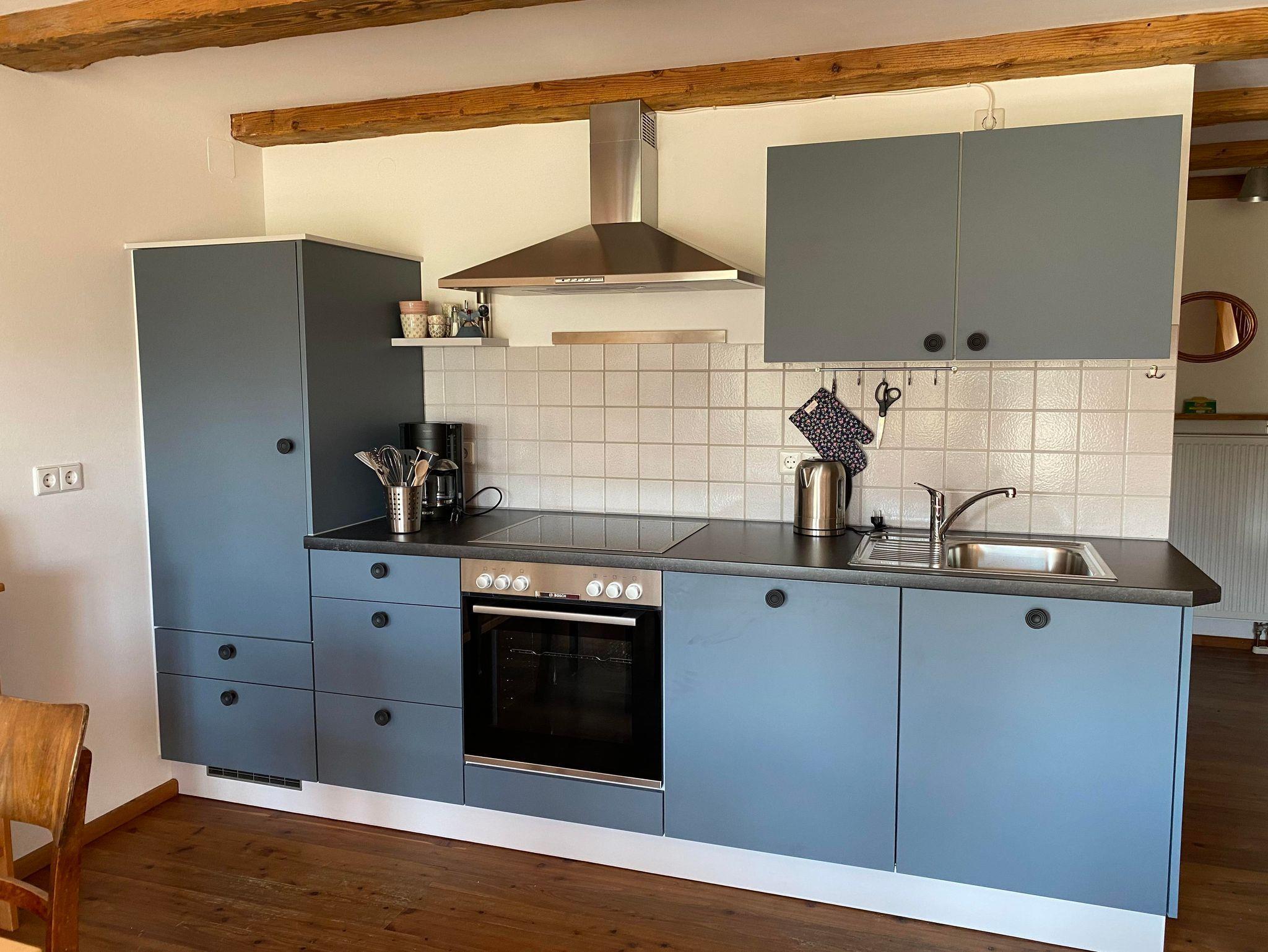 Sehr schöne Ferienwohnung, komplett eingerichtet mit Wohnküche, gemütlich mit Holzbalkendecken. Elternschlafzimmer und über eine Treppe erreichbar ein großes Kinderzimmer mit zwei großen Betten. Ein schmaler Balkon mit Ausblick Richtung Südost.