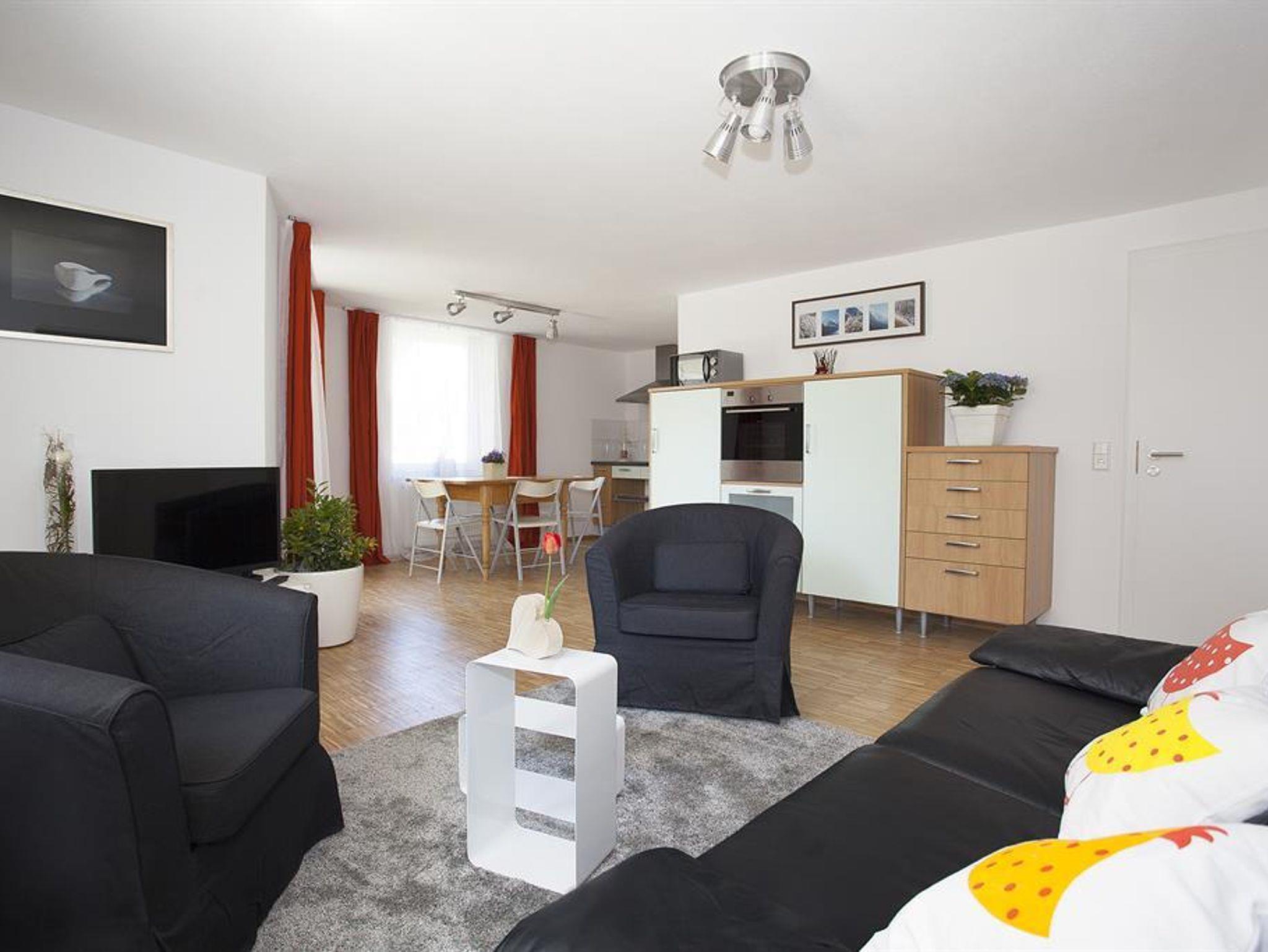 Komplett eingerichtete Zwei-Zimmer-Einliegerwohnung mit großzügigem Wohn-, Küchen- und Essbereich. Neben dem Schlafzimmer mit Doppelbett (180 breit) ist im Wohnbereich ein Schlafsofa (160 breit) verfügbar. Die Küche ist voll ausgestattet. Im Badezimmer befindet sich eine Dusche, WC extra. Beides separiert. Zur Wohnung gehört eine Terrasse und Gartennutzung.