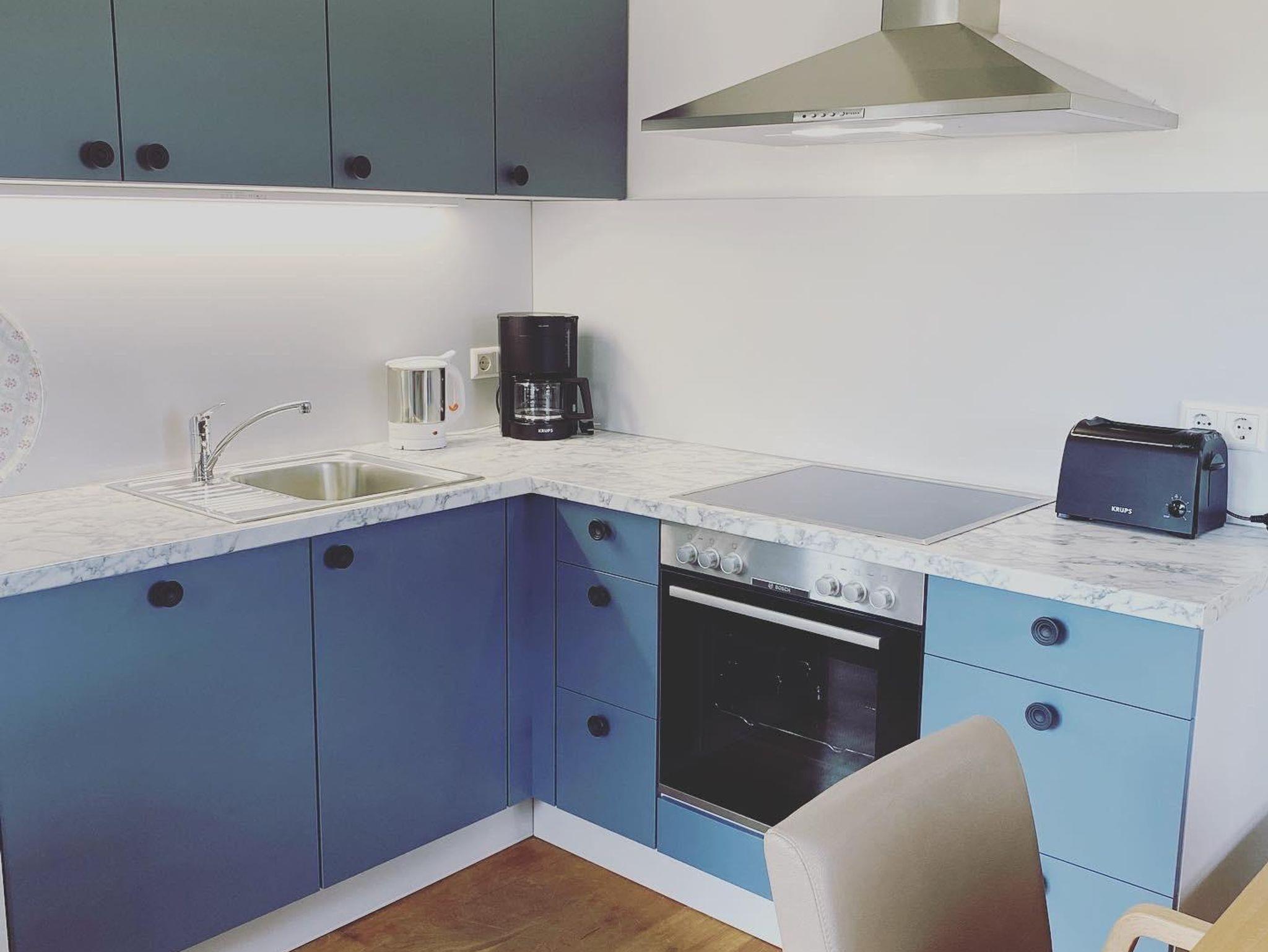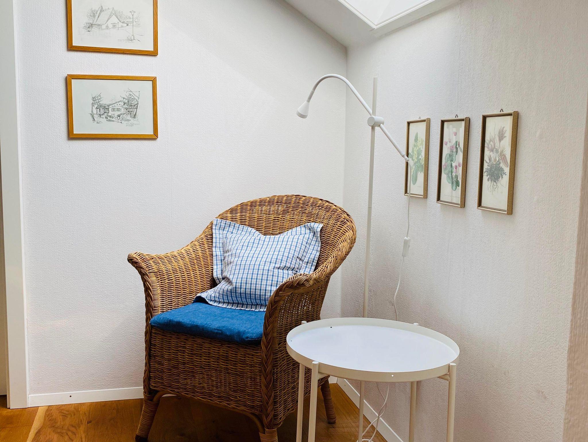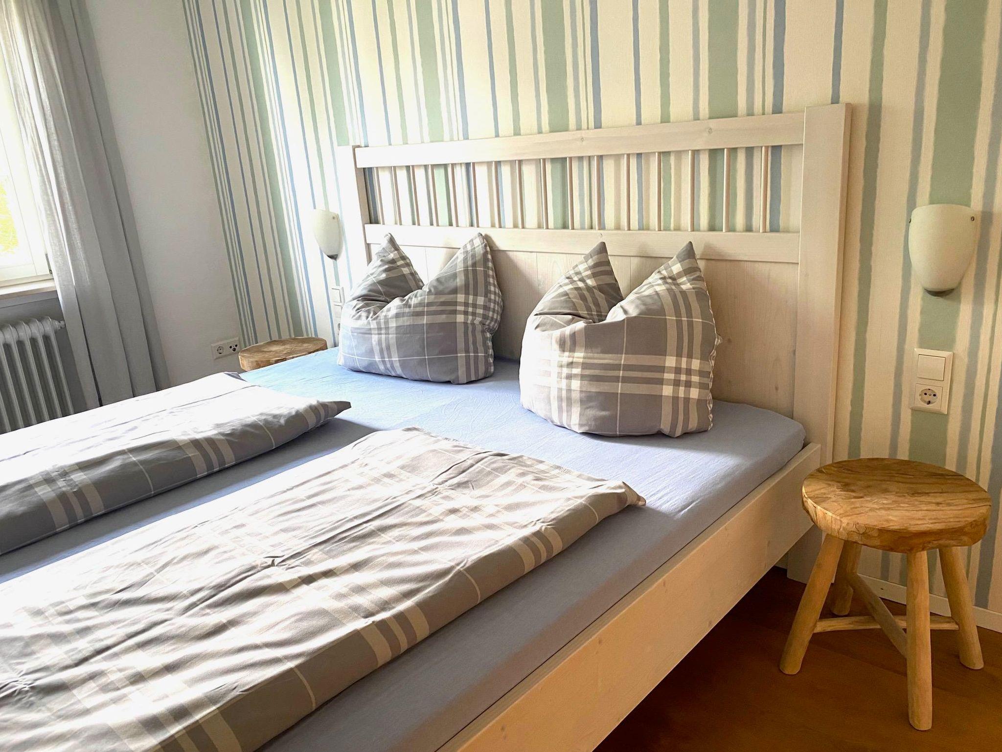 Schöne und gemütliche zweigeschossige Ferienwohnung mit einer kleinen Wohnküche im Erdgeschoss, einem schönen Sitzplatz im Garten, im 1. Stock ein Badezimmer, ein grosses Schlafzimmer und davon abgehend ein kleines Kinderzimmer mit Einzelbett. Die Wohnung hat einen Eichendielenboden.