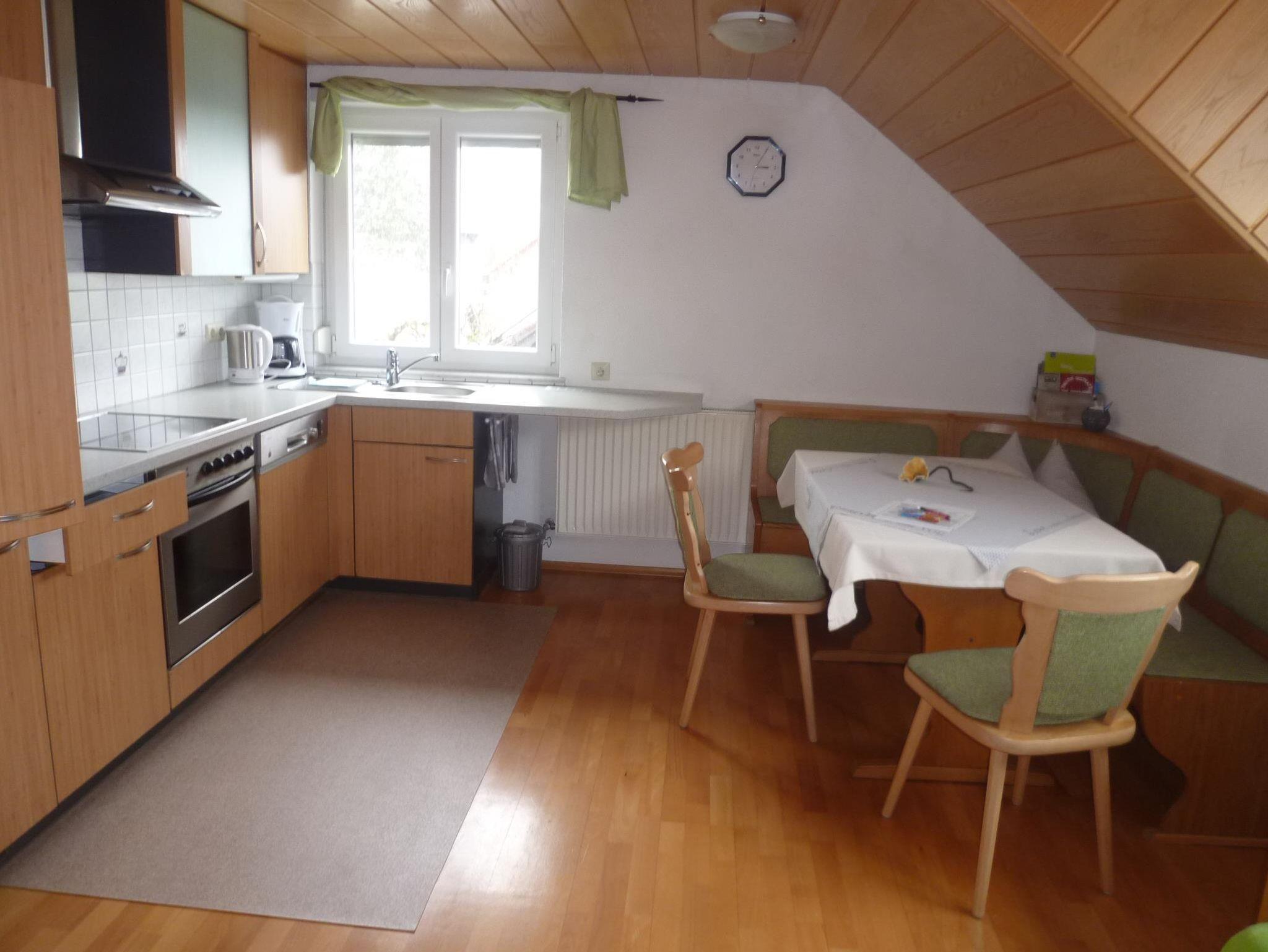Sonnige Dachgeschoss-Ferienwohnung mit Terrasse in einem Zweifamilienhaus mit Garten. Lage in der ruhigen Wohnsiedlung Kleinhaslach in Stadtrandlage von Isny. Distanz zum Burkwanger Baggersee: 1 km. Guter Einstiegsspunkt ins Isnyer Rad- und Wanderwegenetz.Center Park Alläu ca 8 km entfernt, bequem mit dem Buss ereichbar.