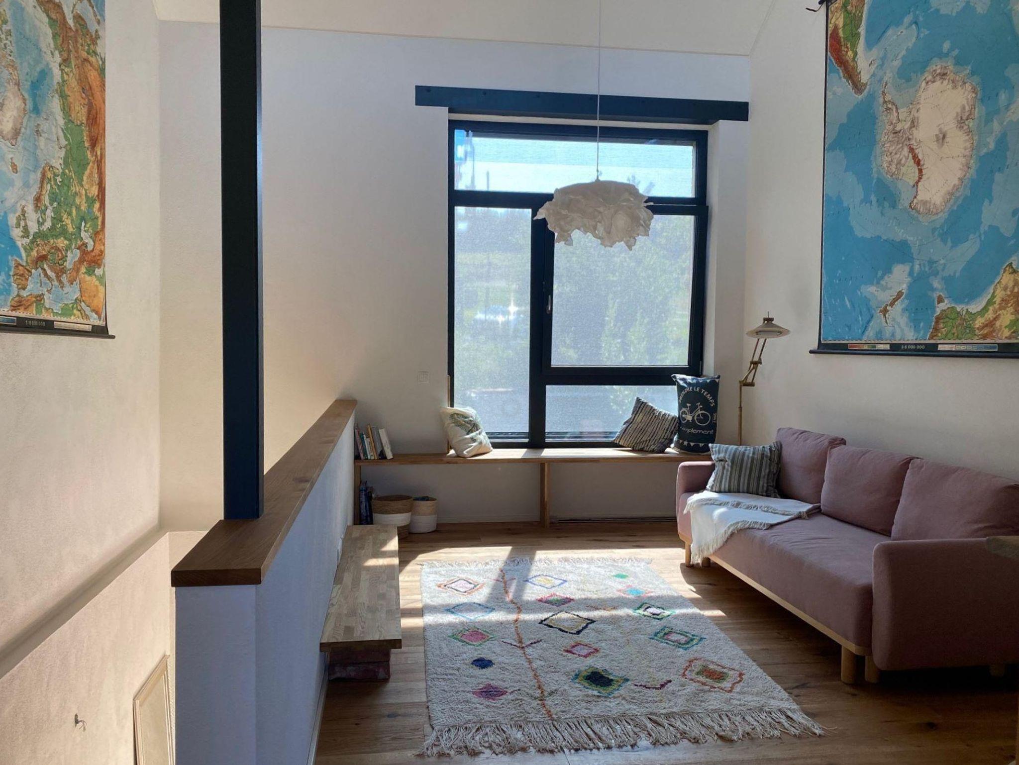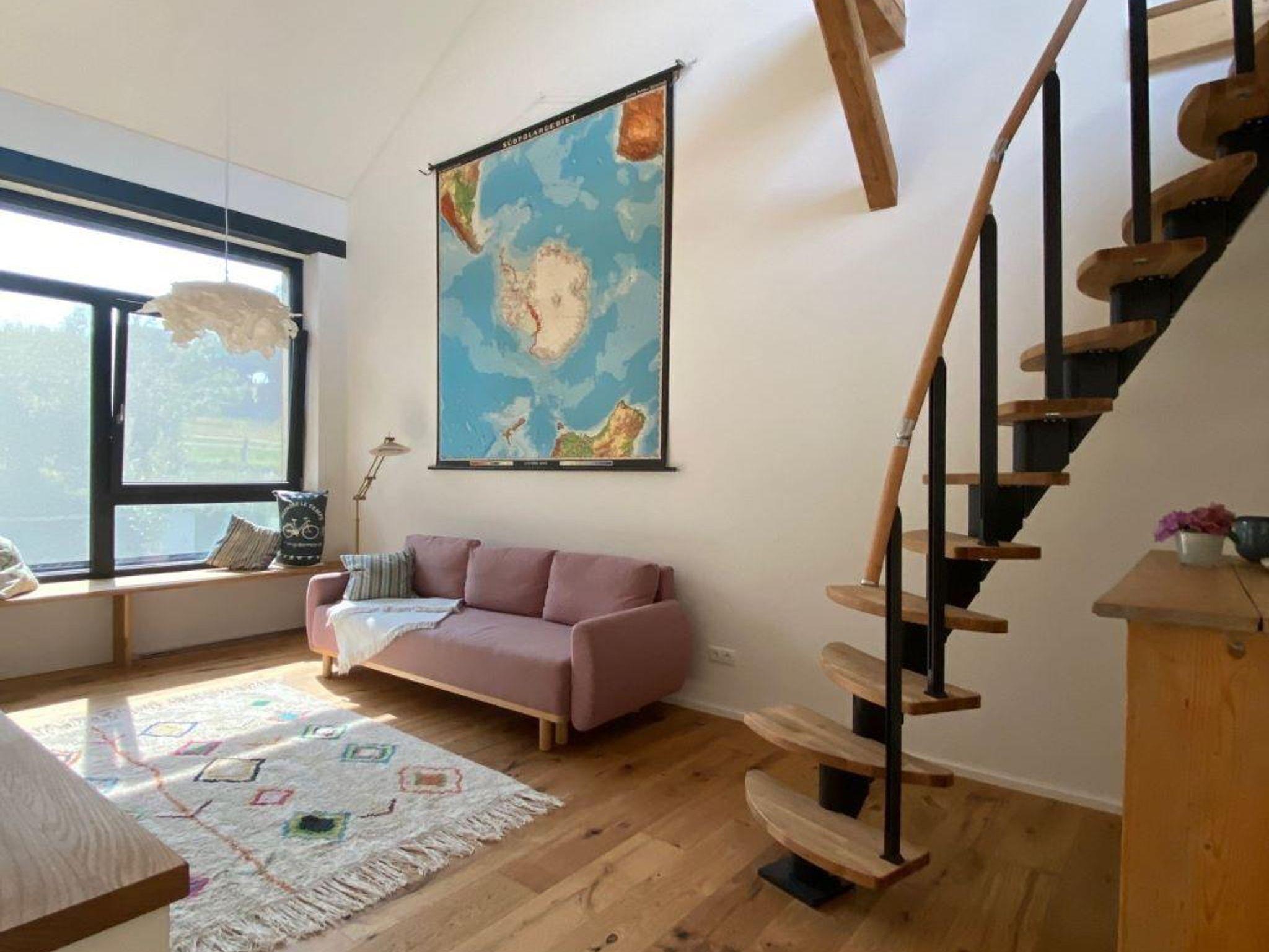 Die Ferienwohnung ist Teil einer restaurierten Scheune, deren Umbau 2024 abgeschlossen wurde. Sie erstreckt sich über zwei Etagen und eine Maisonette-Fläche.