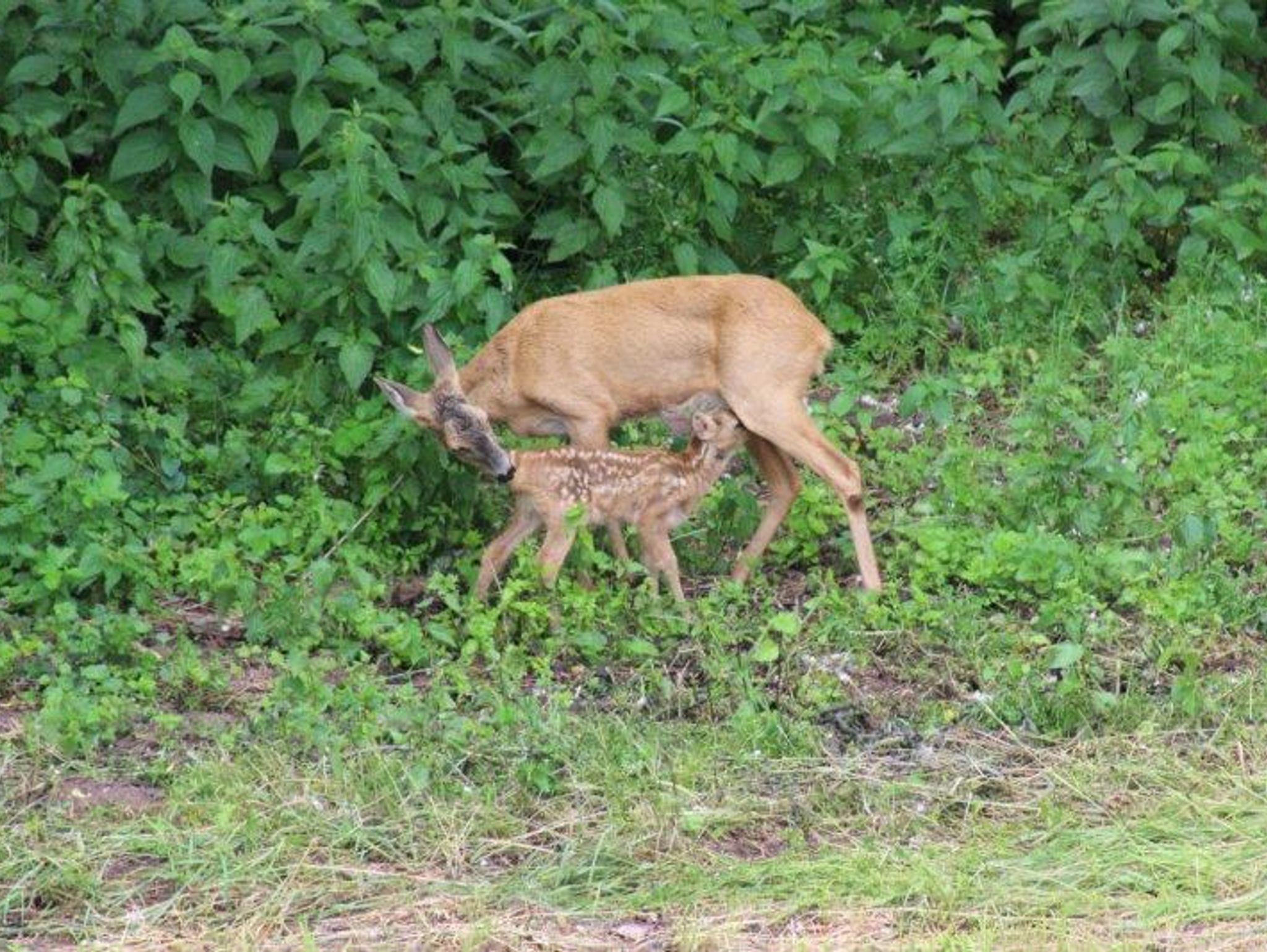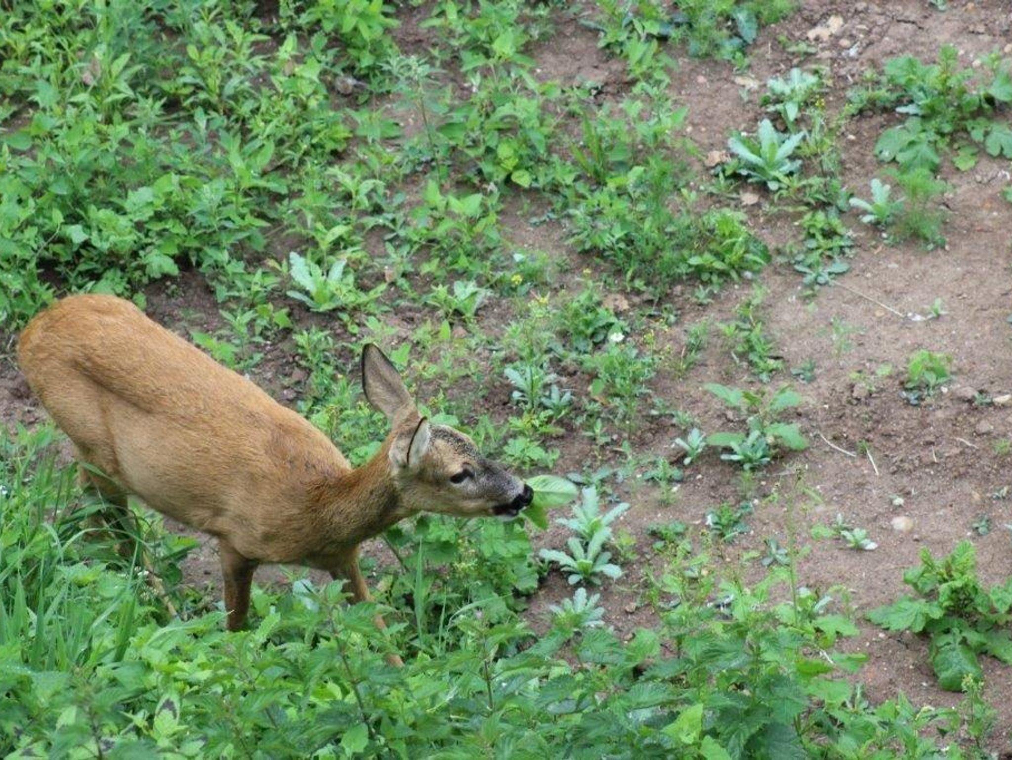 Von der Küche blickt man über das Feuchtebiotop bis hin zum Storchenhorst auf dem Schornstein der Brauerei im Nachbarort Kaltenbrunn.