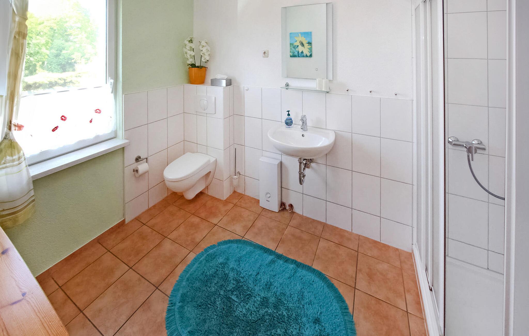 Badeværelse (nr. 1) - WC. Varmt og koldt vand. Bruser