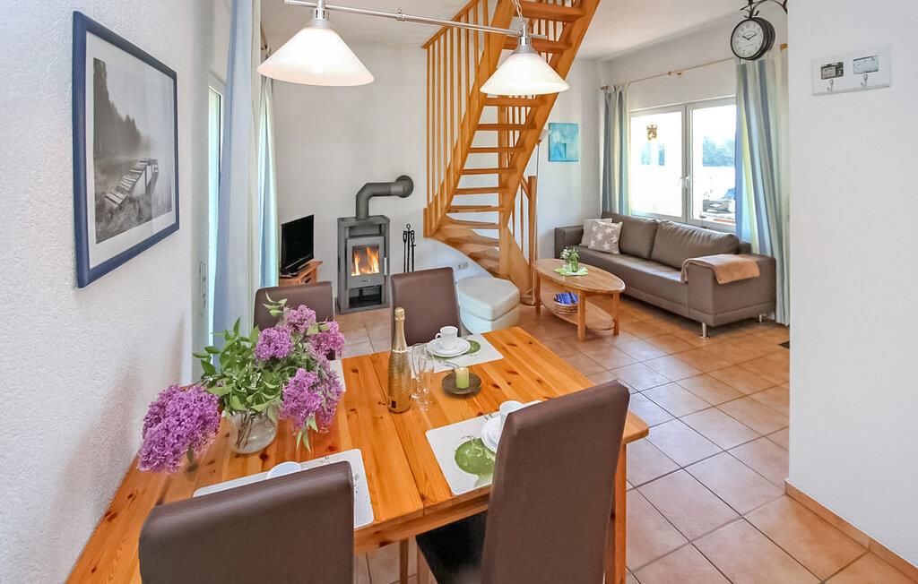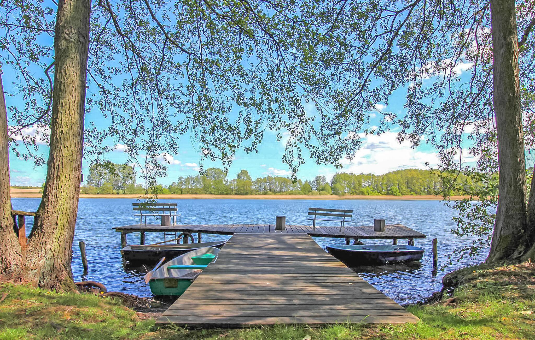 Det 70 kvm store feriehus er fritliggende på en 2000 kvm, delvist indhegnet ejendom ved vandet direkte ved søen Loppiner. Ved søen er der to bade- og fiskebroer og en lille legeplads. Meget smukke, skovklædte omgivelser, der giver mulighed for observation af dyreliv direkte fra ejendommen. Feriehuset har to boligplaner. I stueplan er der opholdsstue (polstrede møbler, fladskærms-tv), åbent tekøkken (elkomfur med ovn, køleskab med fryser, mikroovn, diverse køkkenmaskiner) samt badeværelse med brus/toilet. På øverste etage er der to soveværelser (1 x dobbeltseng, 1 x 2 enkeltsenge som sammenhængende rum). Boligen opvarmes med pejs (brænde inkluderet). Der er to møblerede terrasser, liggestole, en grill, opbevaringsplads til cykler, en robåd og en parkeringsplads. Den samlede pris inkluderer slutrengøring, sengelinned, vand- og energiforbrug samt WiFi. Medbring venligst dine egne håndklæder. Et kæledyr op til 40 cm højt er tilladt i denne ejendom, ingen katte. Loppin, det lille distrikt Jabel (3 km), ligger i en naturskøn beliggenhed i naturparken Nossentiner-Schwinzer Heide. Det omkringliggende område er præget af omfattende skovområder med et enormt dyreliv og talrige søer. Området kan nemt udforskes på cykel. Cykelstien Berlin-København går gennem Loppin. Damerower Werder bison-indhegning ligger 6 km derfra. Waren (Müritz) spa, turistcentret i Mecklenburg Lake District, kan nås efter 14 km. Loppiner See, der ligger i lokalområdet, betragtes som et fremragende fiskevand med en fremragende bestand af store karper .