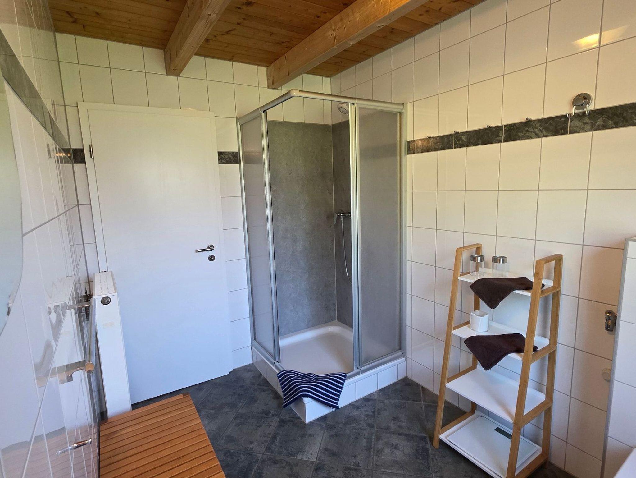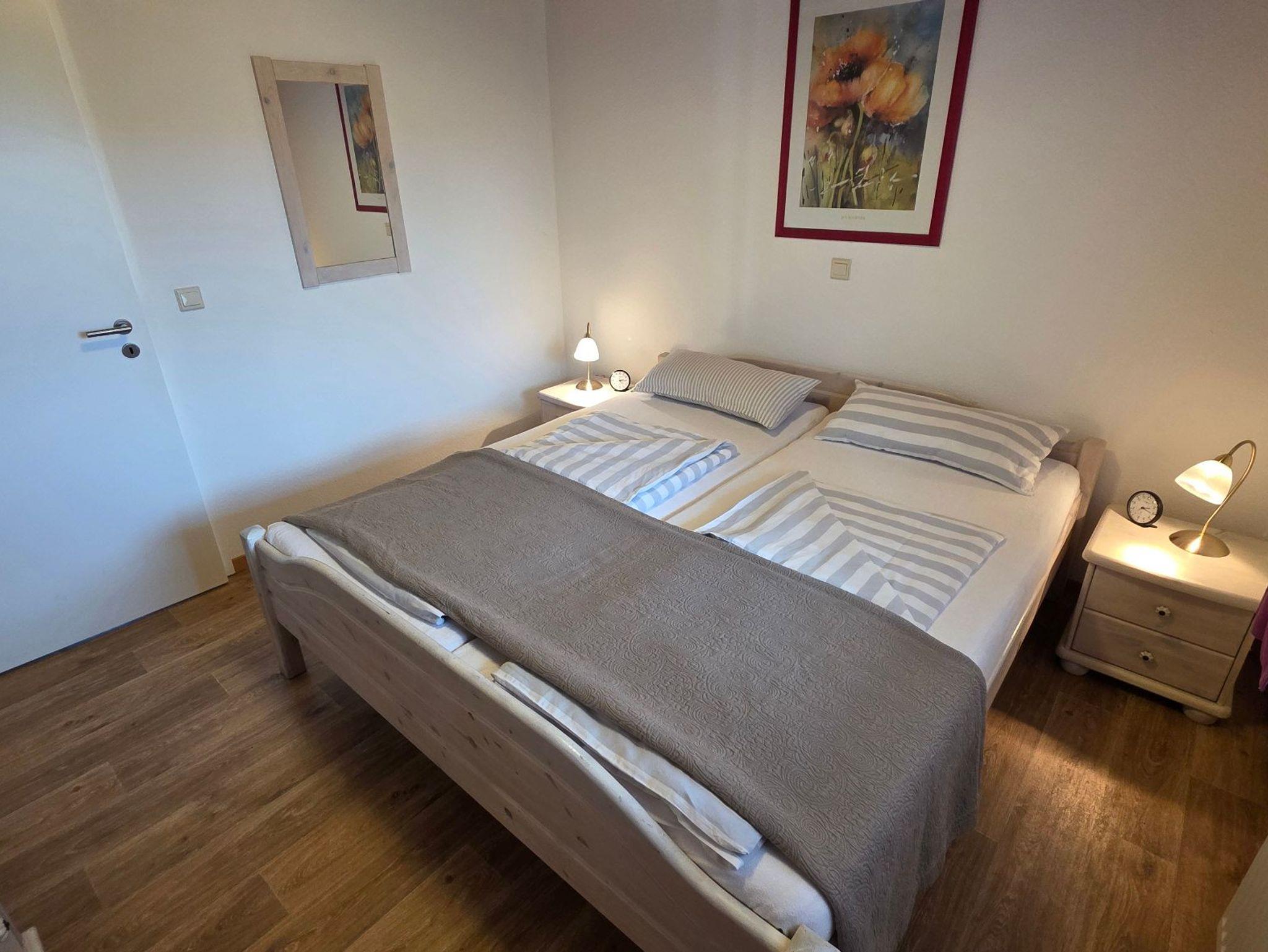 Das Duschbad ist geräumig. Ein Gäste WC ist vorhanden. Die beiden Schlafzimmer sind jeweils mit einem Doppelbetten ausgestattet.