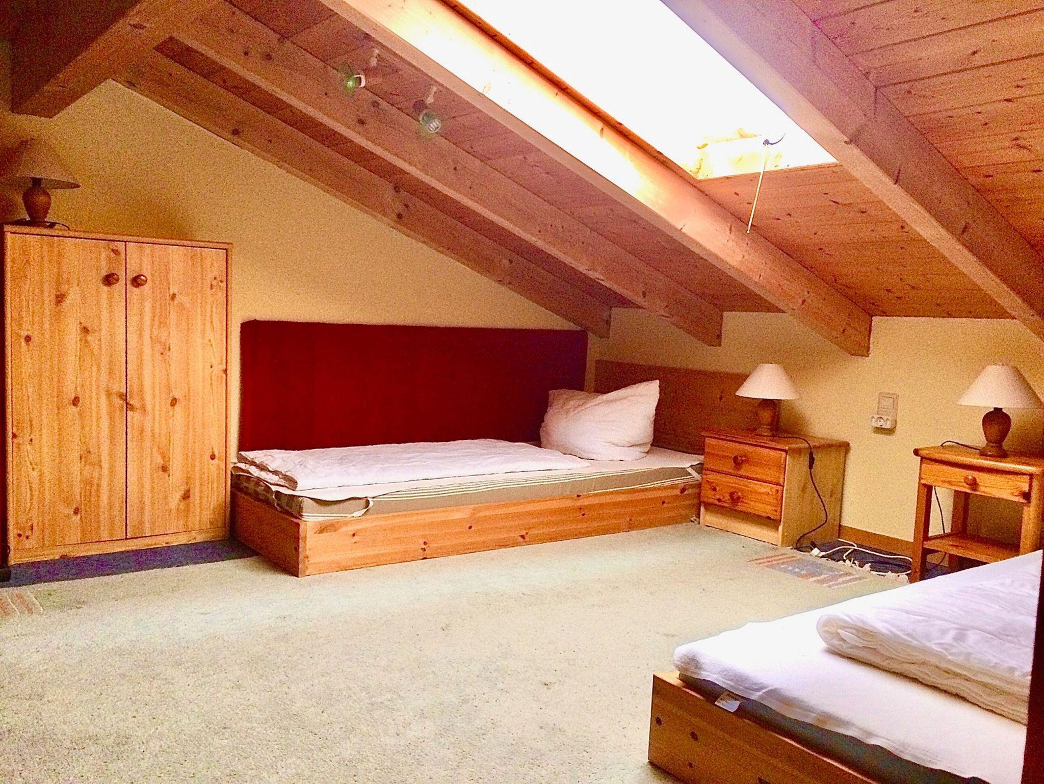 Der Schlafboden, Alkoven, ein Paradies für Kinder, wird über eine Treppe erreicht und hat zwei Einzelbetten.