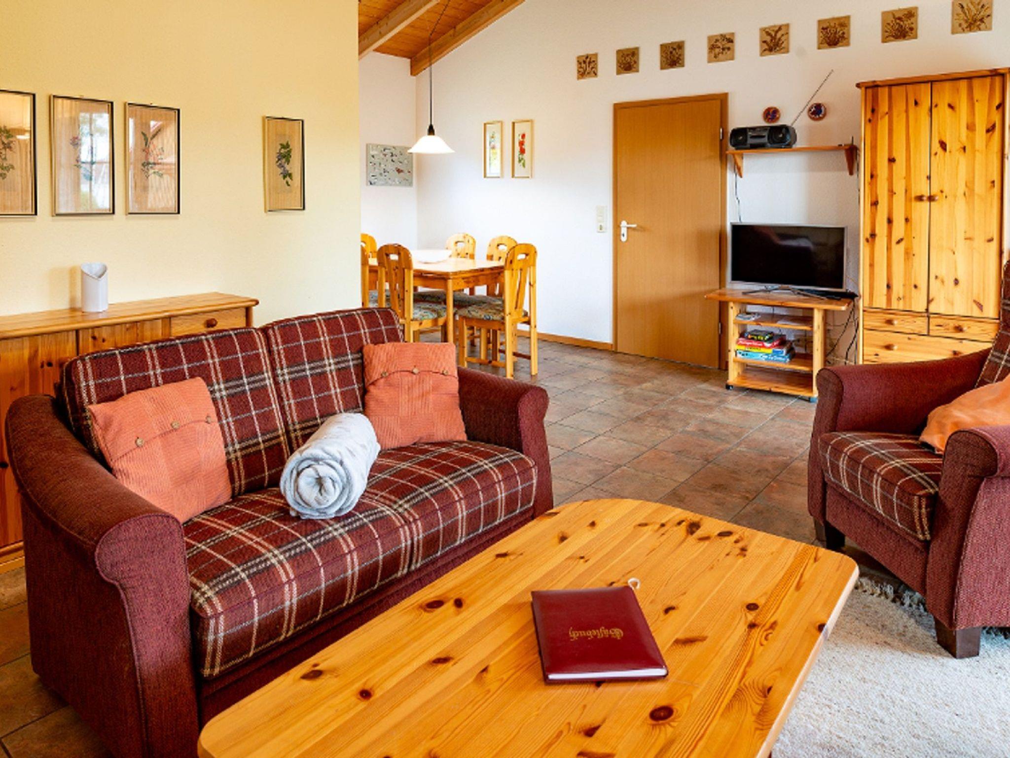 Die gemütliche Ausstattung des 80 qm großen Ferienhauses zuzüglich eines geräumigen Alkovens bietet ganzjährig Komfort und Bequemlichkeit. Dazu gehören Internet Anschluß, Sat-TV, Radio, seperater Küchenbereich, komplett ausgestattet mit Geschirrspüler, großem Kühlschrank und Mikrowelle, Duschbad, 2 getrennte Schlafzimmer mit Doppelbett sowie 2 zusätzlichen Betten im kinderfreundlichen Alkoven. Von der geräumigen und überdachten Terrasse mit Gartenmöbeln blickt man auf den See. Spielplatz und Badestelle liegen in der Nähe der Ferienanlage. Es ist ein Platz inmitten geschützter Natur und alter Kultur. Er macht neugierig, beides kennen zu lernen und sich dabei zu erholen.