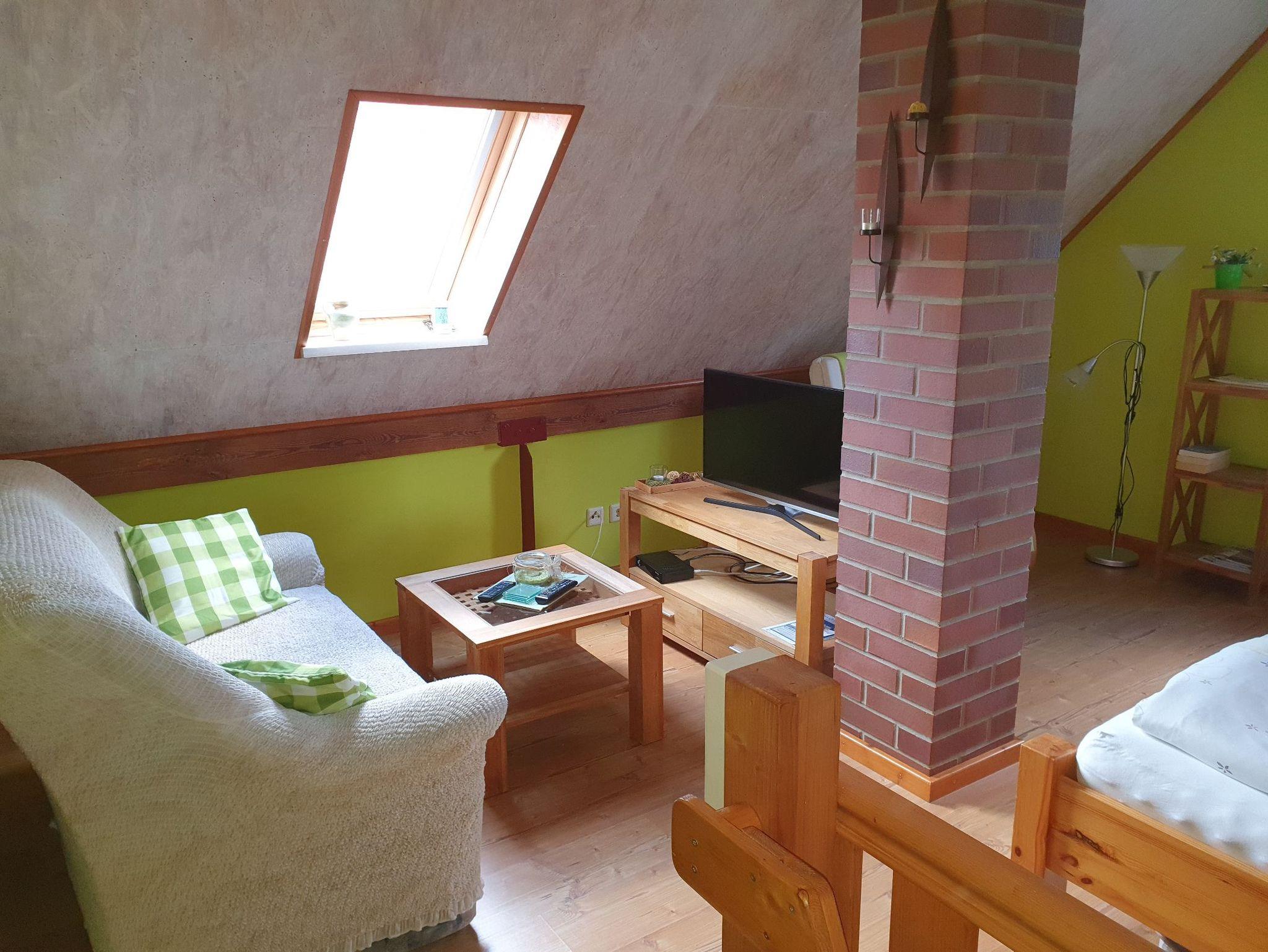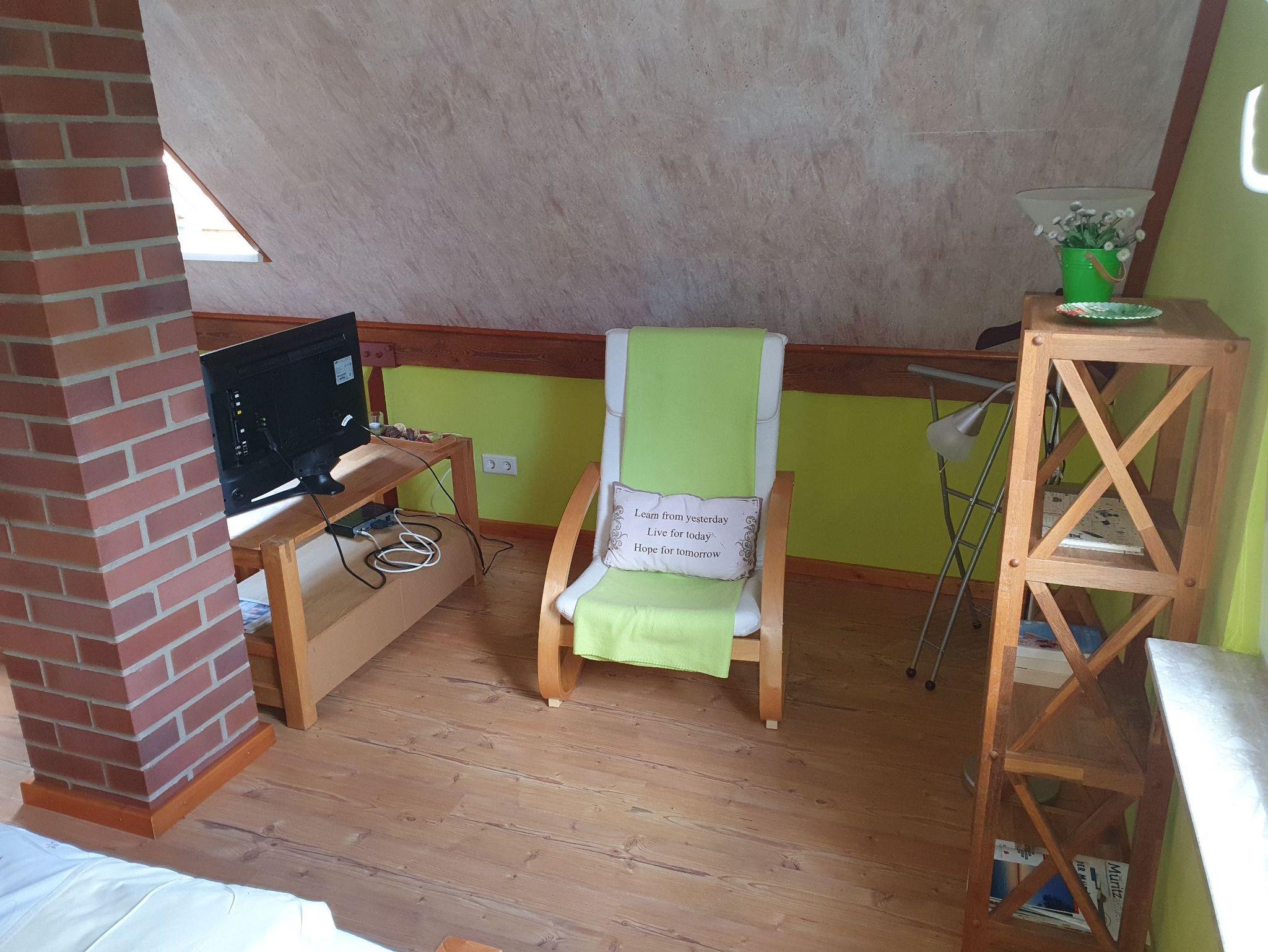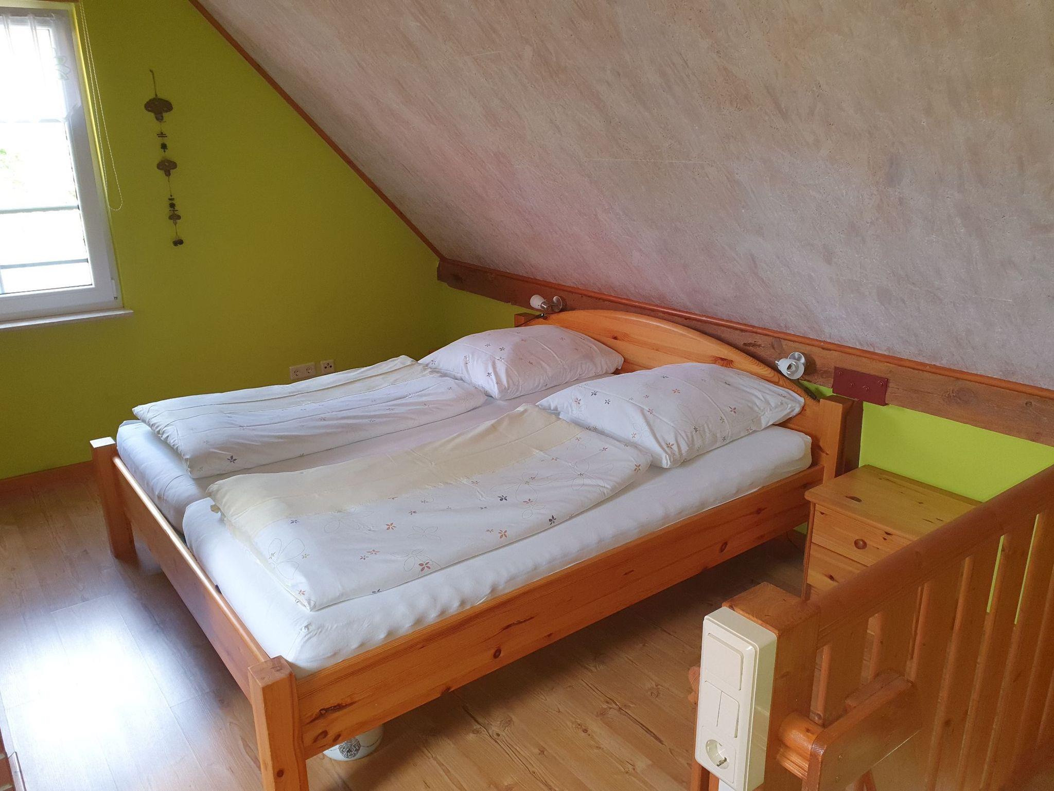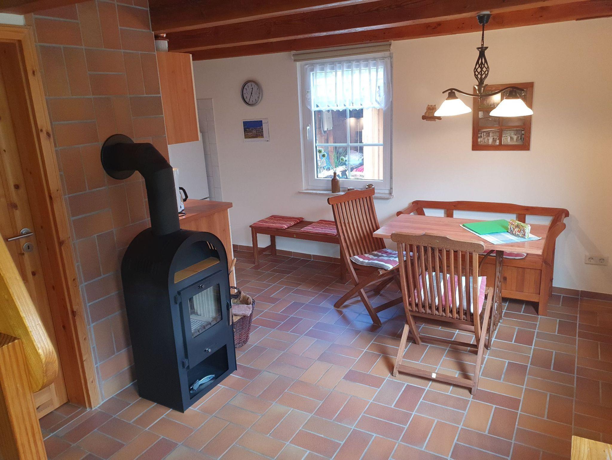 Das 40 qm Nichtraucher-Ferienhaus für 2 Personen befindet sich freistehend auf einem 960 qm großen Wohngrundstück und verfügt über 2 Wohnebenen. Im Erdgeschoss gibt es eine offene Wohnküche mit Kamin sowie das Duschbad. Über eine Raumspartreppe (für Kleinkinder u. gehbehinderte Menschen nicht geeignet) kommt man ins Obergeschoss mit kombiniertem Wohn- und Schlafraum. Gegen eine kleine Gebühr stellt die Eigentümer das Kaminholz zur Verfügung. Den Betrag hinterlegen Sie bitte bei Abreise in das dafür vorgesehene Gefäß. Auf dem Grundstück befindet sich noch ein Haus mit zwei weiteren Ferienwohnungen.