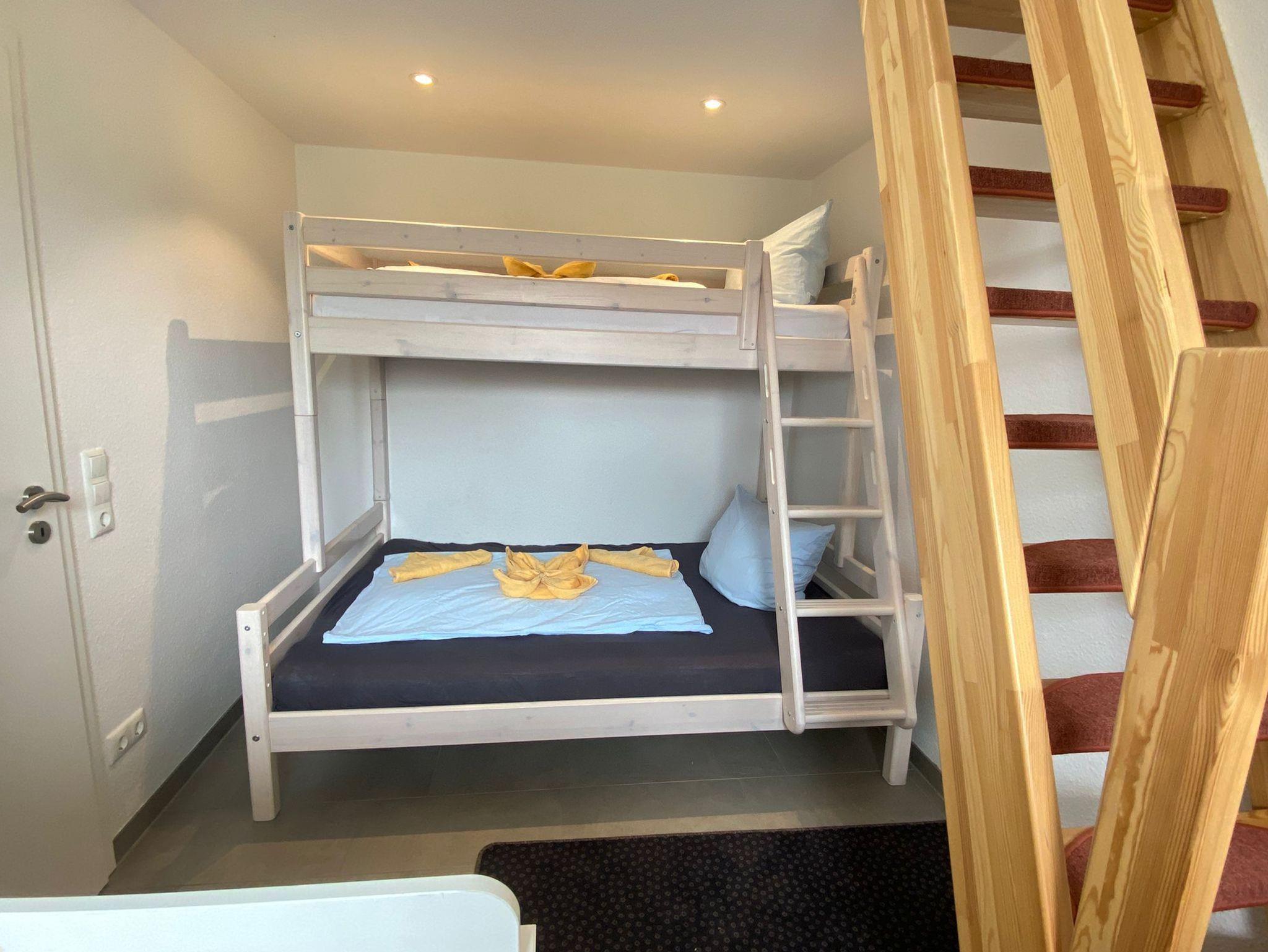 Unser Haus Fasanen Nest ist ein 3-Sterne-Neubau. Auf ca. 80 qm Wohnfläche wartet eine stilvolle Ausstattung auf Sie. Alle Räume verfügen über Fußbodenheizung. Im Badezimmer finden Sie eine extra große Walk-In-Regendusche und eine Waschmaschine mit Trocknerfunktion . Auch ein Gäste-WC ist vorhanden. Die Möblierung ist hochwertig und die Grundausstattung im kompletten Objekt lässt keine Wünsche offen. Es gibt einen Schlafraum mit Doppelbett und ein weiteres Schlafzimmer mit Hochbett mit zwei verschiedenen Matratzengrößen und eine Wickelkommode. Hier geht es rauf zur Spielempore. (Die steile Treppe ist nicht geeignet für Kleinkinder), Eine weitere Person kann sich auf dem Schlafsofa betten.