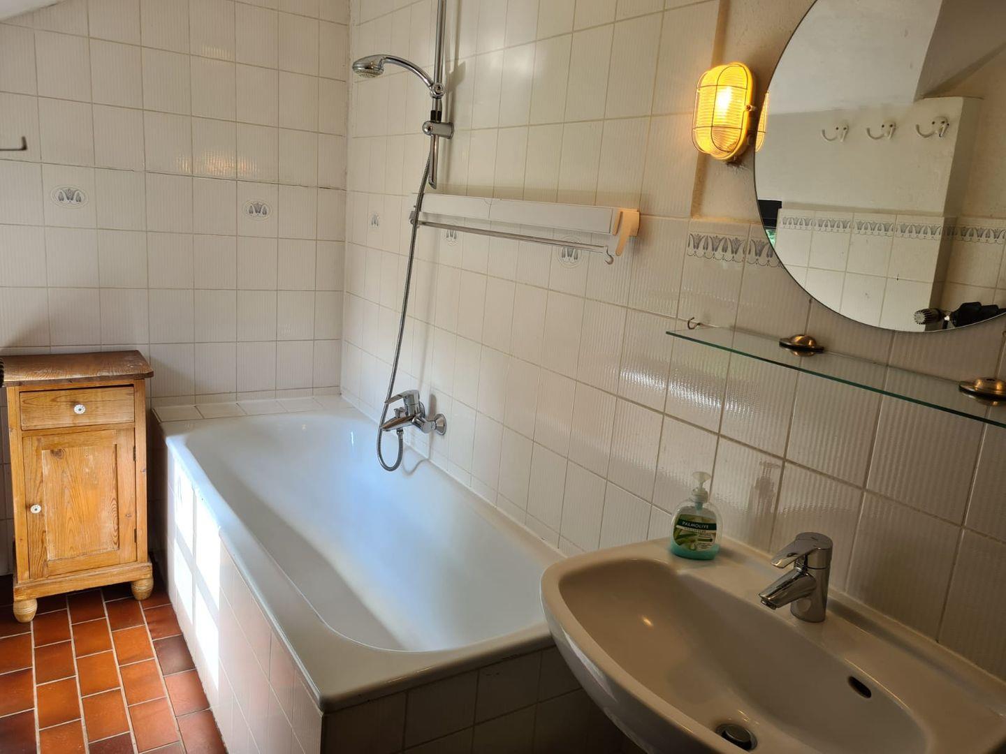 Das Bauernhaus verfügt über ein Duschbad mit WC, sowie eine getrennte Dusche und WC im Dielenbereich.