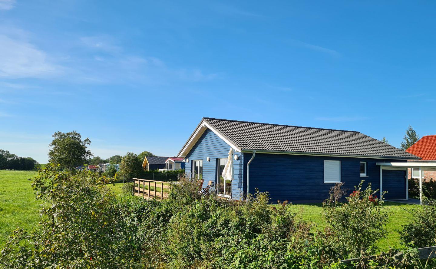 Das hochwertig ausgestattete Ferienhaus bietet bis zu 5 Personen Platz auf 92 qm. Es bietet viel Komfort, ein Arbeitszimmer und einen fantastischen 180°-Blick in die Natur. Das nachhaltige blaue Holzhaus im Stil Skandinaviens ist liebevoll und gemütlich eingerichtet. 2 Badezimmer mit jeweils begehbarer Dusche, 3 Schlafzimmer, von denen eines als Arbeitszimmer nutzbar ist, eine moderne Landhausküche, gehören zur Ausstattung.