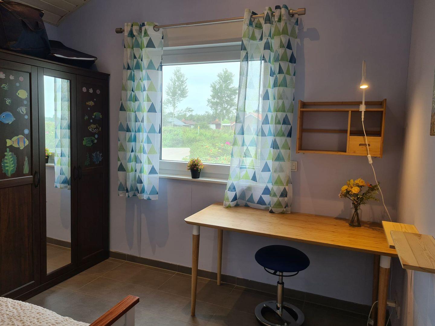 Das Haus ist allergikerfreundlich mit Bodenfliesen ausgestattet, und unter ökologischen Gesichtspunkten gebaut, die Wände wurden schlicht mit auro-Farben gestaltet.