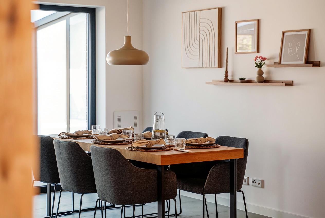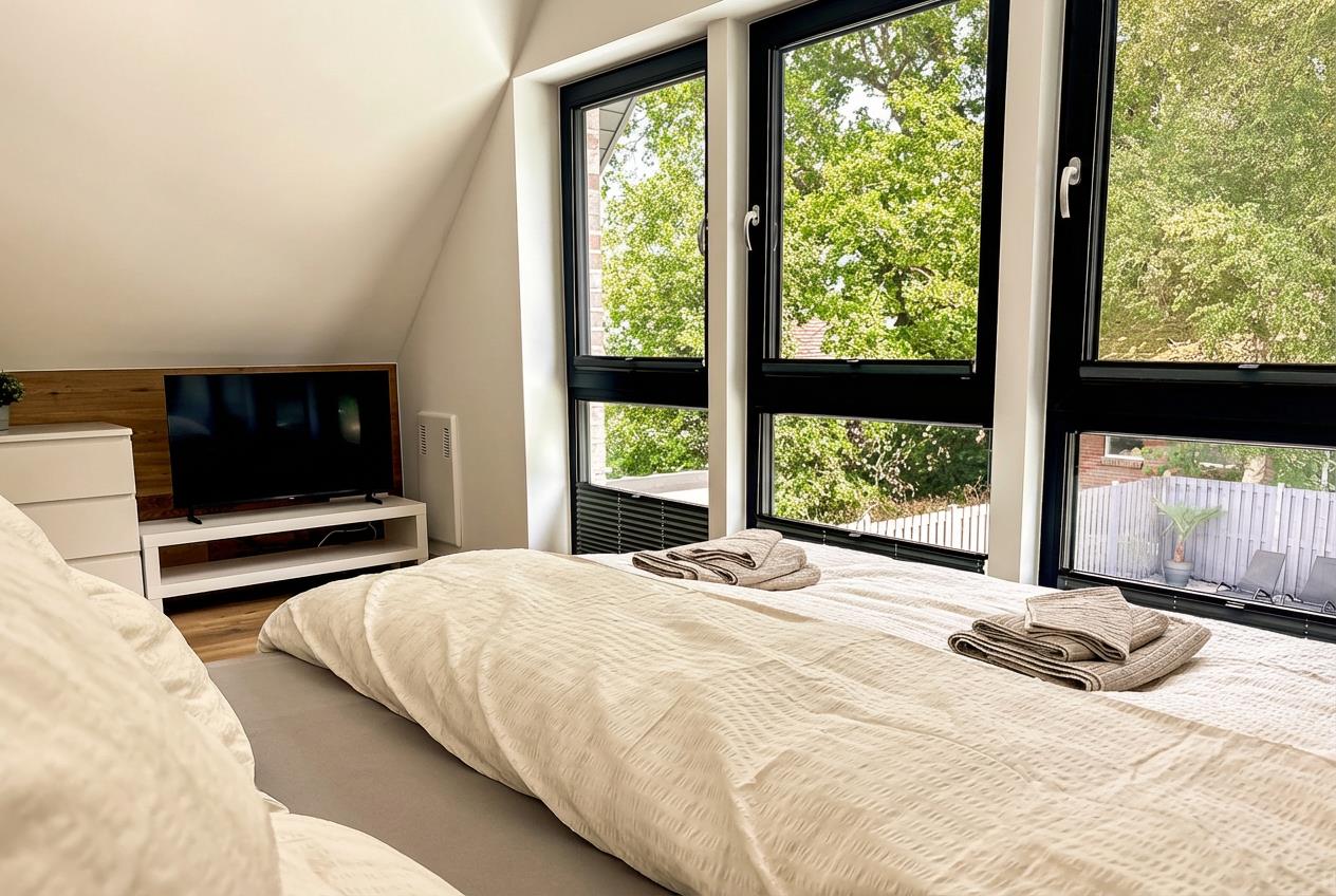 Das Haus verfügt über drei gemütliche Schlafzimmer, jeweils mit eigenem Smart-TV. Ein offener Wohn- und Essbereich mit großen Fenstern sorgt für viel Tageslicht und eine angenehme Wohlfühlatmosphäre. Zwei moderne Bäder mit ebenerdiger Dusche bieten höchsten Komfort.